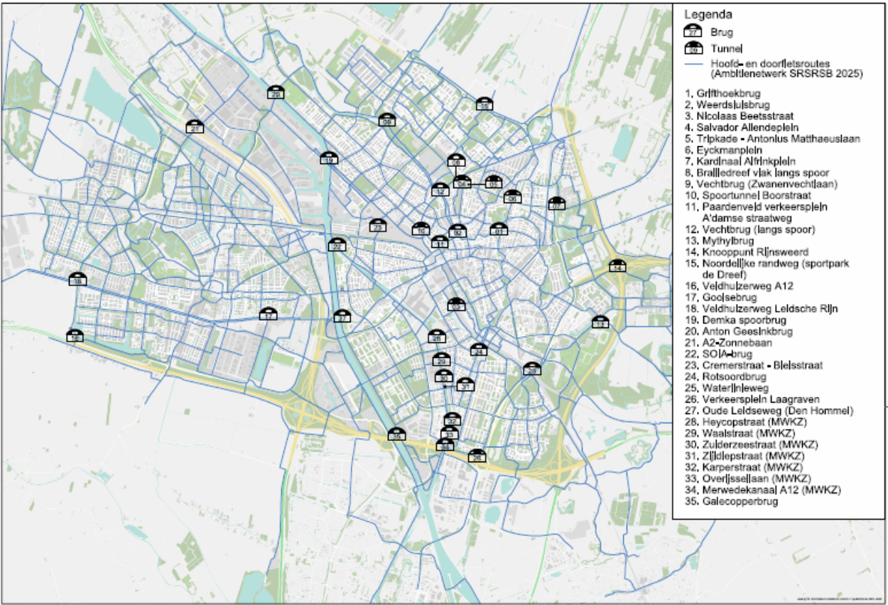 Op de lijst staat 26 bruggen en 9 tunnels. Bij het onderzoek wordt onder andere gekeken naar de technische uitvoerbaarheid, acceptatie in de wijk, betaalbaarheid en de meerwaarde voor fietsers. Uiteindelijk moet er een lijst komen met ongeveer 5 tot 10 bruggen en tunnels en het meest kansrijk zijn.