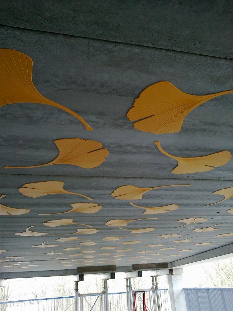 De gele en groene blaadjes op de plafonds hebben de vorm van het blad van de Japanse notenboom Ginkgo Biloba. Op de website van bouwbedrijf Volkerwessels staat dat deze boom ”symbool staat voor onveranderlijkheid, hoop, liefde, toverkracht, tijdloosheid en een lang leven”. Voor de klus waren speciale mallingen en verrijdbare stellingen nodig.