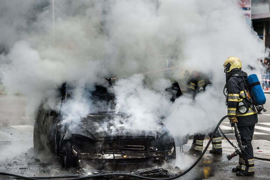 Wat mij keer op keer verbaasd is dat de brandweer auto branden blust met water of schuim.