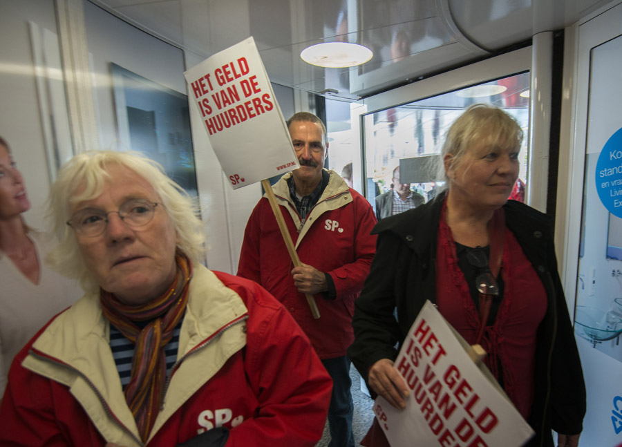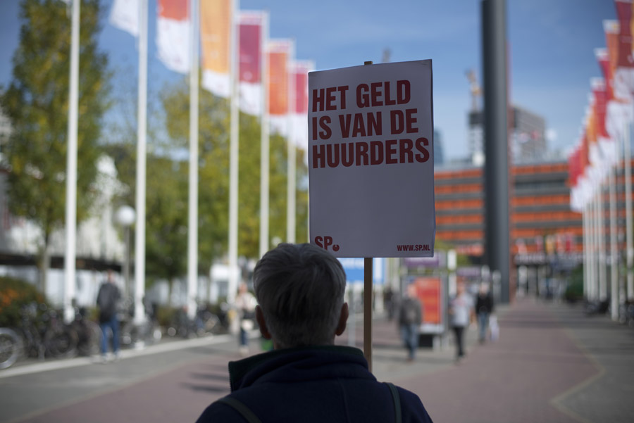 De SP voerde vandaag actie bij de Jaarbeurs. Daar vond een extra congres van de vereniging van woningcorporaties Aedes plaats. De vereniging en het kabinet hebben principe-afspraken gesloten. Vandaag mogen alle directeuren van de aangesloten woningcorporaties hun stem uitbrengen over deze afspraken.