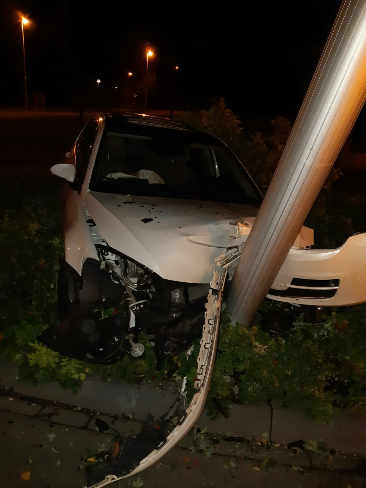 Het ongeluk gebeurde rond 04.00 uur in de nacht van zaterdag op zondag. De bestuurder verloor vermoedelijk de macht over het stuur en belandde tegen een paal. Gezien de schade van de auto moet het een flinke klap zijn geweest.