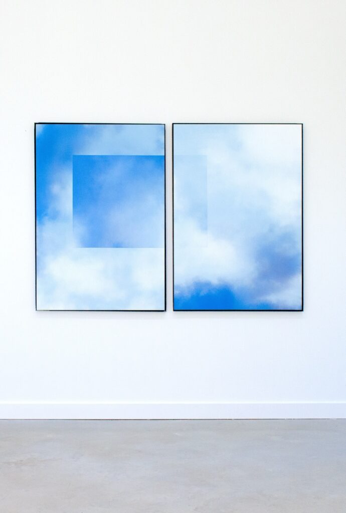 Kijk lang genoeg en er komt een herinnering naar boven, van een mooie zomerdag op je rug in het gras. En dan komt Babs’ compositie. Kaarsrechte lijnen geven structuur. Een tweede vlak wolken snijdt de andere wolken zo recht af dat het doet twijfelen aan de werkelijkheid, en voor je het weet sta je weer met beide benen op de grond.