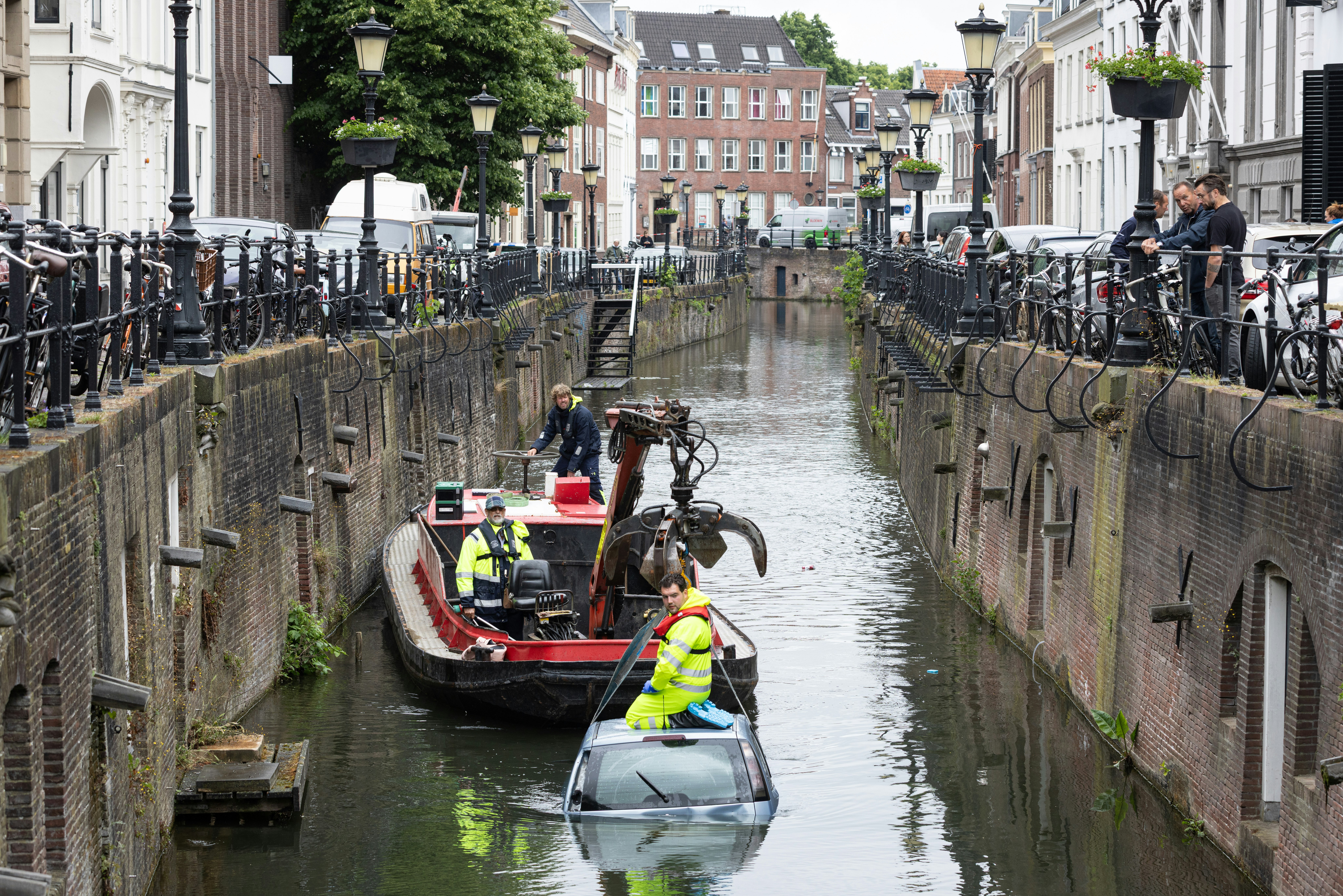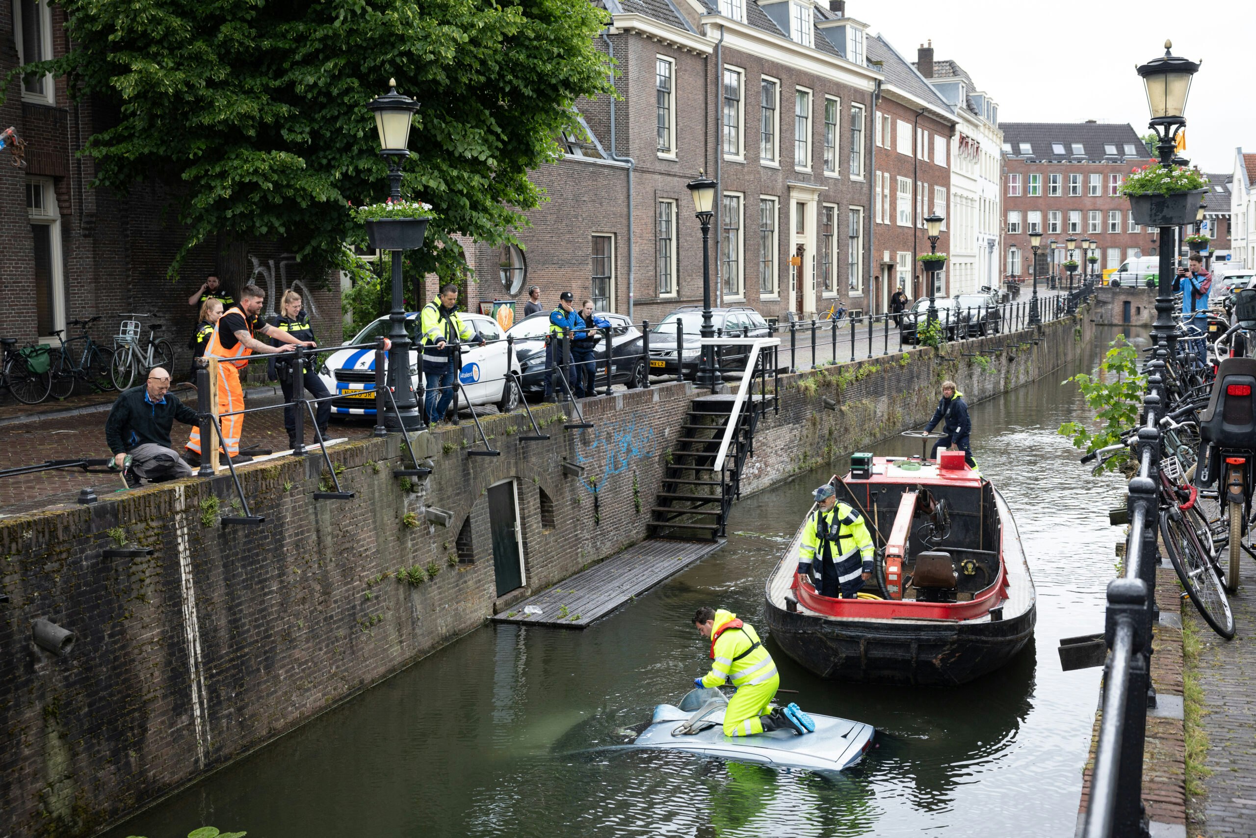 Aan de Plompetorengracht in Utrecht is dinsdagmorgen rond 09.15 uur een auto in de gracht…