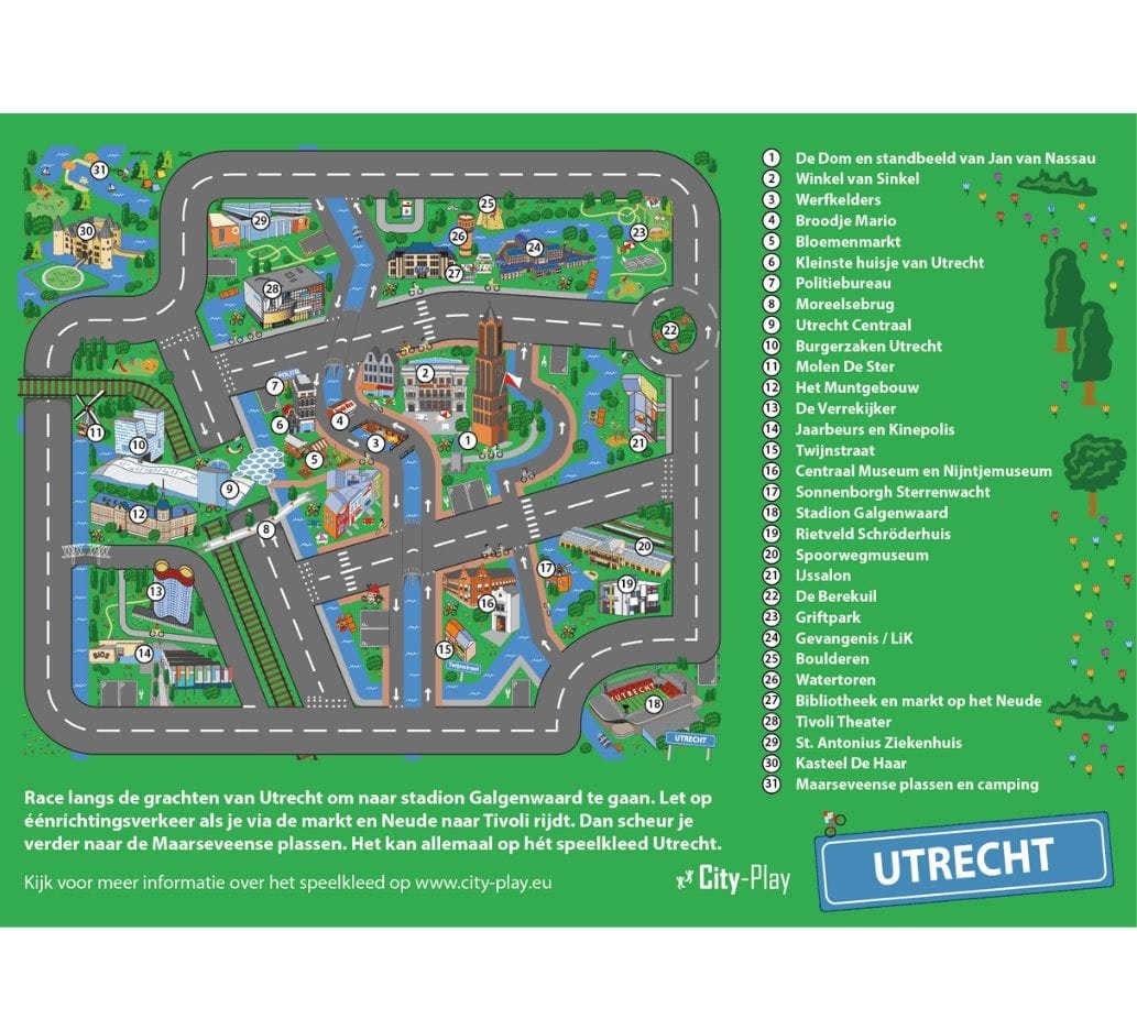 Kinderen kunnen vanaf eind juni spelen op een speelkleed van de stad Utrecht. Op het kleed staan alle iconen van de stad, zodat Utrechtse kinderen spelend hun eigen stad kunnen leren kennen.