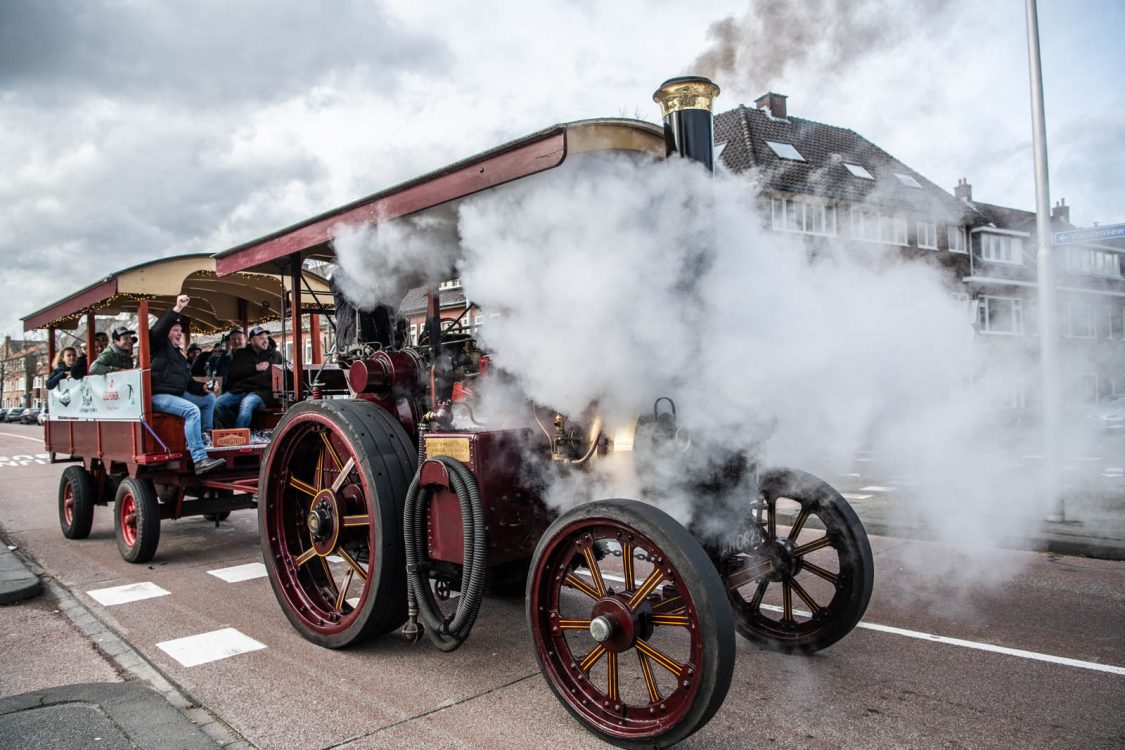 Sissend en fluitend reed de stoomtrekker door de stad. Het bijzondere voertuig trok een hoop bekijks naar zijn eindbestemming Camping Ganspoort waar het eerste fust bier Op Stoom werd geopend.