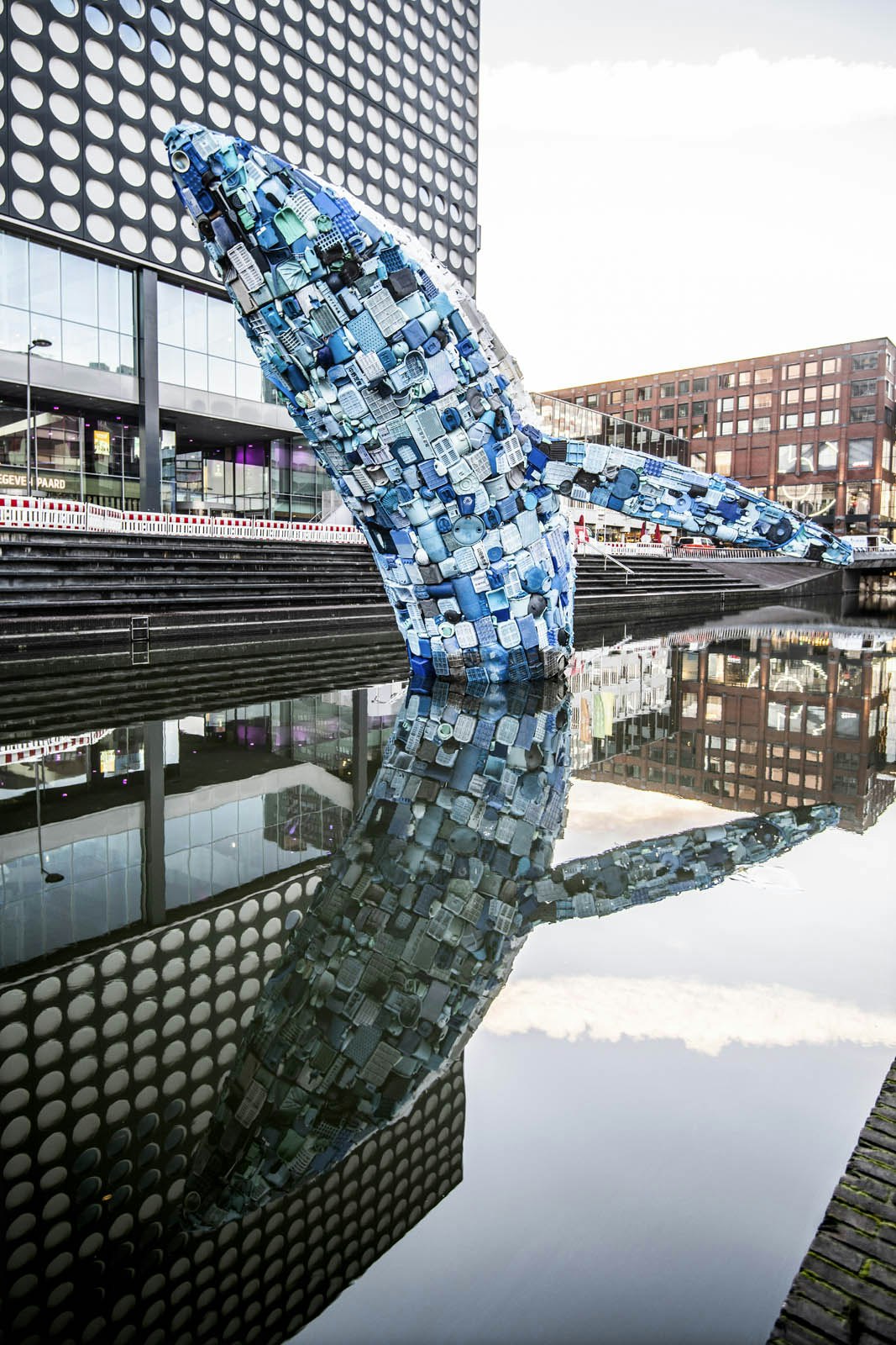 In de Catharijnesingel voor TivoliVredenburg staat een metershoge plastic walvis – gemaakt van vijf ton…