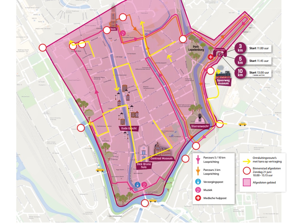 Aanstaande zondag 21 juni vindt de Ladiesrun Utrecht plaatst. Daarom zullen er een aantal wegen in en rond de binnenstad op zaterdag 20 en zondag 21 juni volledig afgesloten zijn voor auto’s en fietsen.
