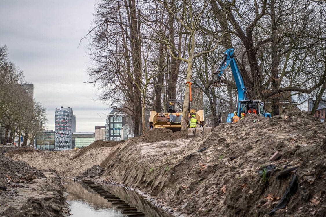 Het water stroomt over een paar maanden weer helemaal rond de historische binnenstad van Utrecht, maar voordat er weer gevaren kan worden over de singel moeten eerst alle bomen verplant worden.