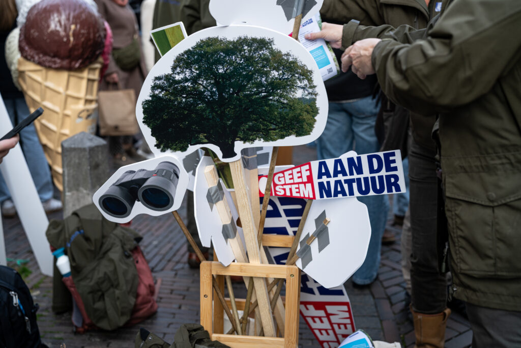 De boswachters van Natuurmonumenten willen dat de natuurbescherming een duidelijke plek krijgt op de politieke agenda. Ze organiseerden vandaag op het Vredenburgplein een actie om daar aandacht voor te vragen. “De politiek staat stil”, vinden ze. “Terwijl we plannen en dieren verliezen en ons water, lucht en bodem vervuild zijn.”