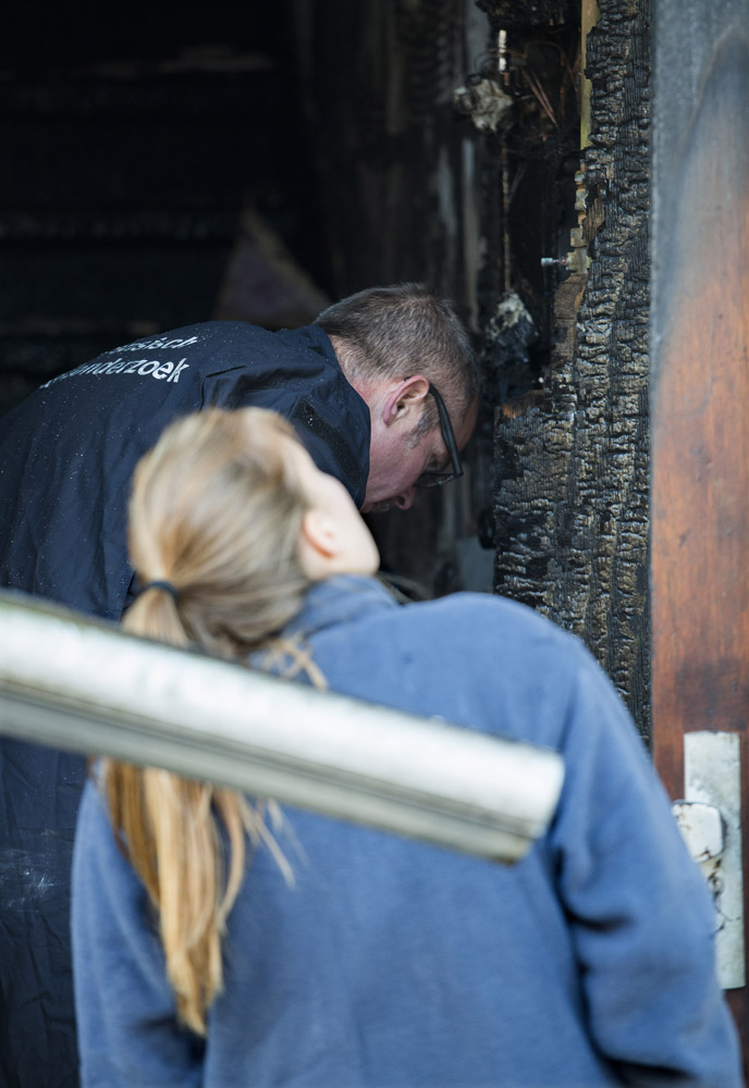 Ter plekke vertelt de verbouwer (die anoniem wil blijven) dat gisteren de laatste hand aan de verbouwing is gelegd, zijn gereedschap lag nog binnen. Vanmiddag om één uur zou de sleuteloverdacht plaatsvinden. Hij denkt dat er iets door de brievenbus is gegooid.