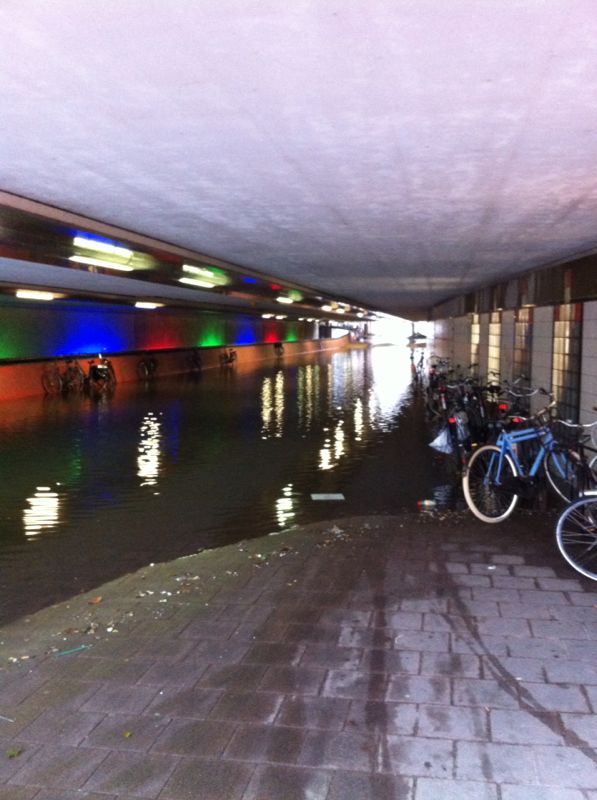 Van het laatst genoemde had ook onze verslaggever last, toen hij door dit tunneltje onder het station wilde lopen.