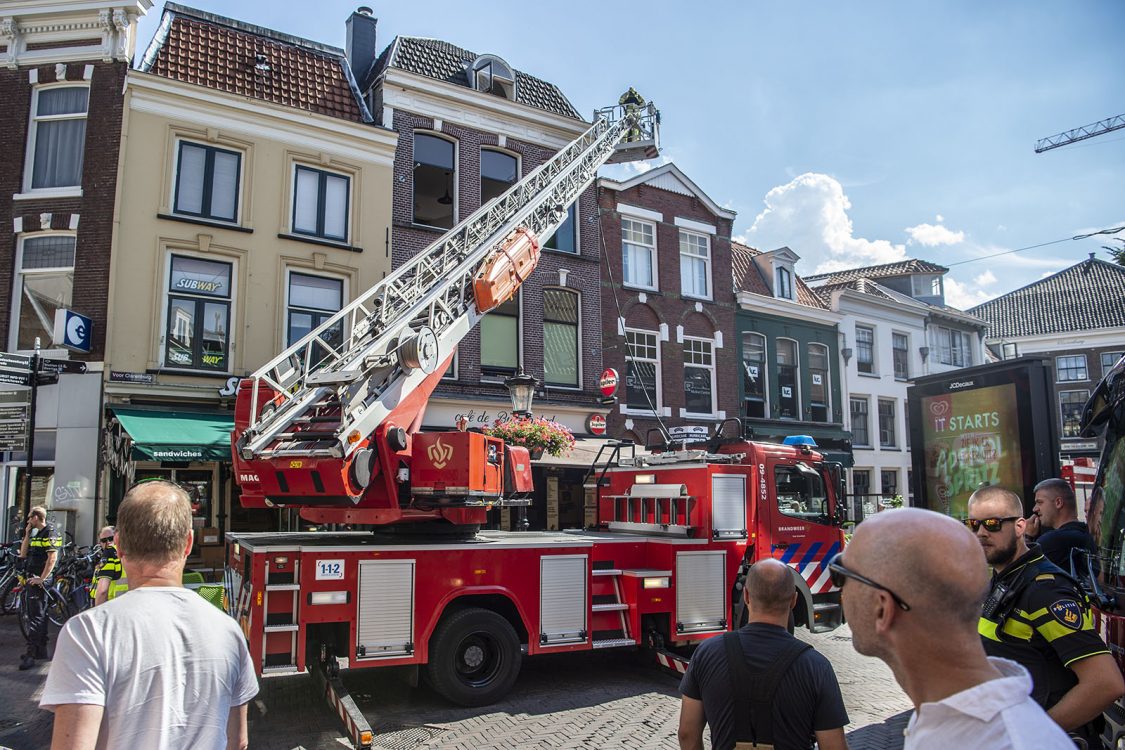 De brandweer is zondagmiddag uitgerukt vanwege een brand boven een café bij de kruising van de Steenweg en Voor Clarenburg in Utrecht. De brandweer was met meerdere wagens aanwezig en een deel van de straat werd afgezet.
