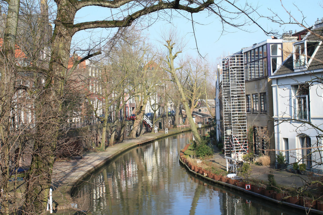 Het werk aan de werf bij de Oudegracht ligt al bijna vier weken stil omdat een ekster aan het broeden is in een schietwilg precies naast de gracht.
