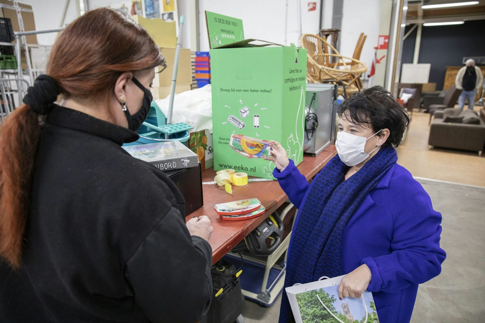 Emmaus Domstad, met name bekend vanwege de kringloopwinkels in Utrecht, kreeg dinsdagmiddag bezoek van burgemeester Sharon Dijksma. De winkels zijn vanwege de coronamaatregelen al een tijdje gesloten en Emmaus verkeert daardoor in zwaar weer. Deze week wordt echter de webshop gelanceerd en kunnen klanten online een cadeaubon kopen.