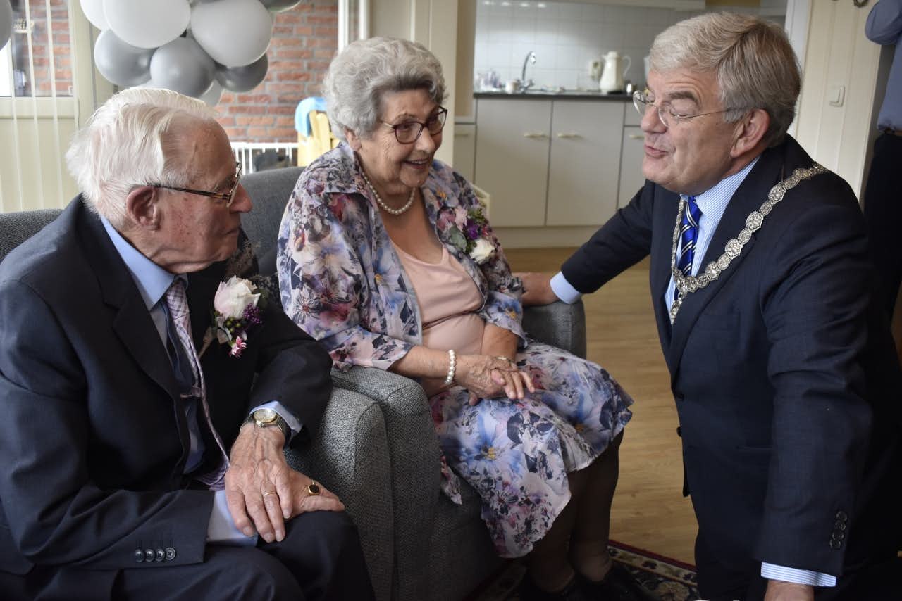 Het is een bijzonder weekend voor Jan (90) en Annie (89) Heus. Het Utrechtse echtpaar viert zondag hun 70-jarig huwelijk. Zaterdagmiddag kregen zij daarom hooggeëerd bezoek. Geheel volgens de traditie bij een platina huwelijk kwam burgemeester Jan van Zanen een bloemetje brengen.