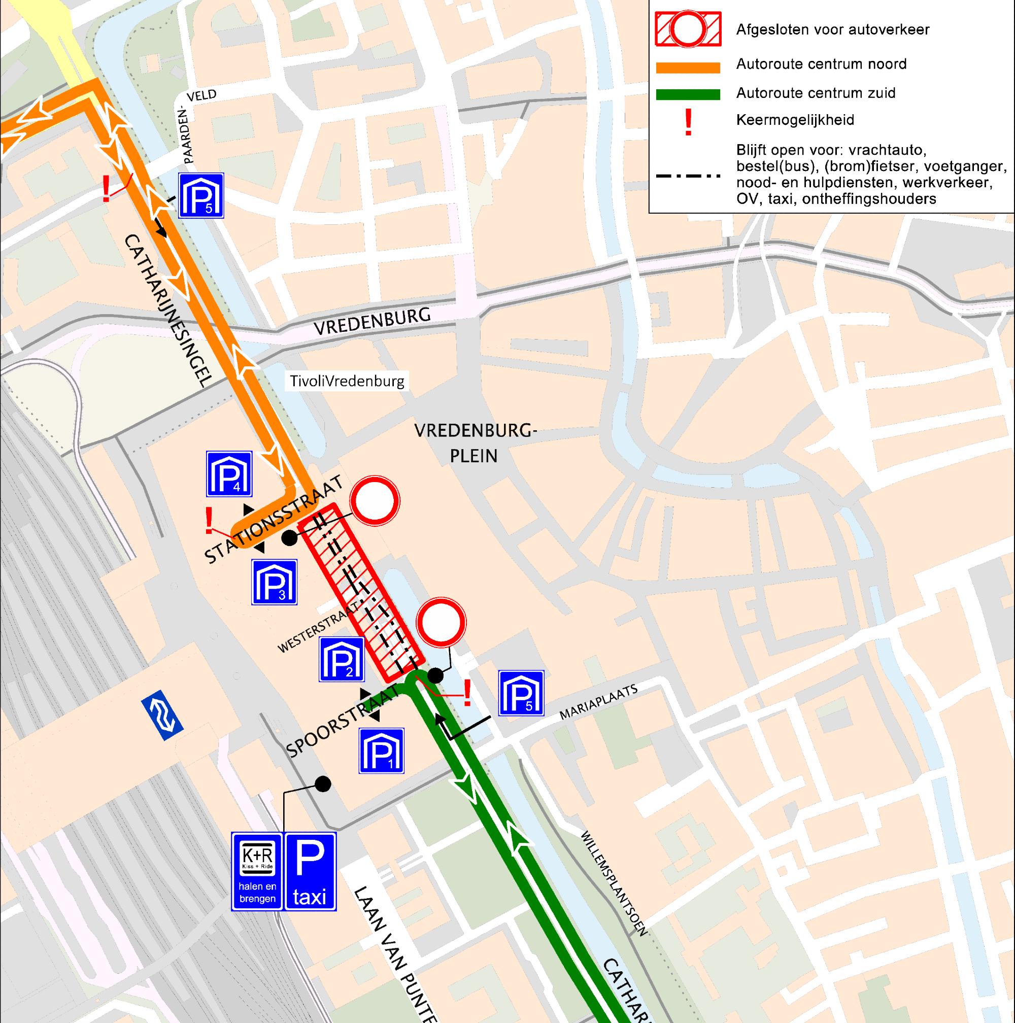 De afsluiting komt tussen de Stationsstraat en de Spoorstraat. De werkzaamheden starten in januari 2025 en vanaf maart kunnen automobilisten niet meer van noord naar zuid, en van zuid naar noord rijden over de Catharijnesingel.