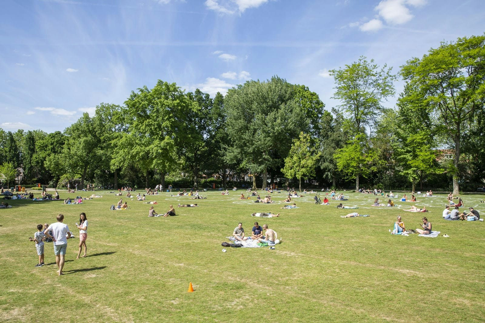 Het park trok zondag behoorlijk wat bezoekers en de markeringen leken effectief. Elke afzonderlijke groep bleef binnen de lijnen en zat daardoor met genoeg tussenruimte bij elkaar vandaan. Op een deel van het grote grasveld, en ook op de kleinere veldjes in het Julianapark, zijn geen cirkels aangebracht.