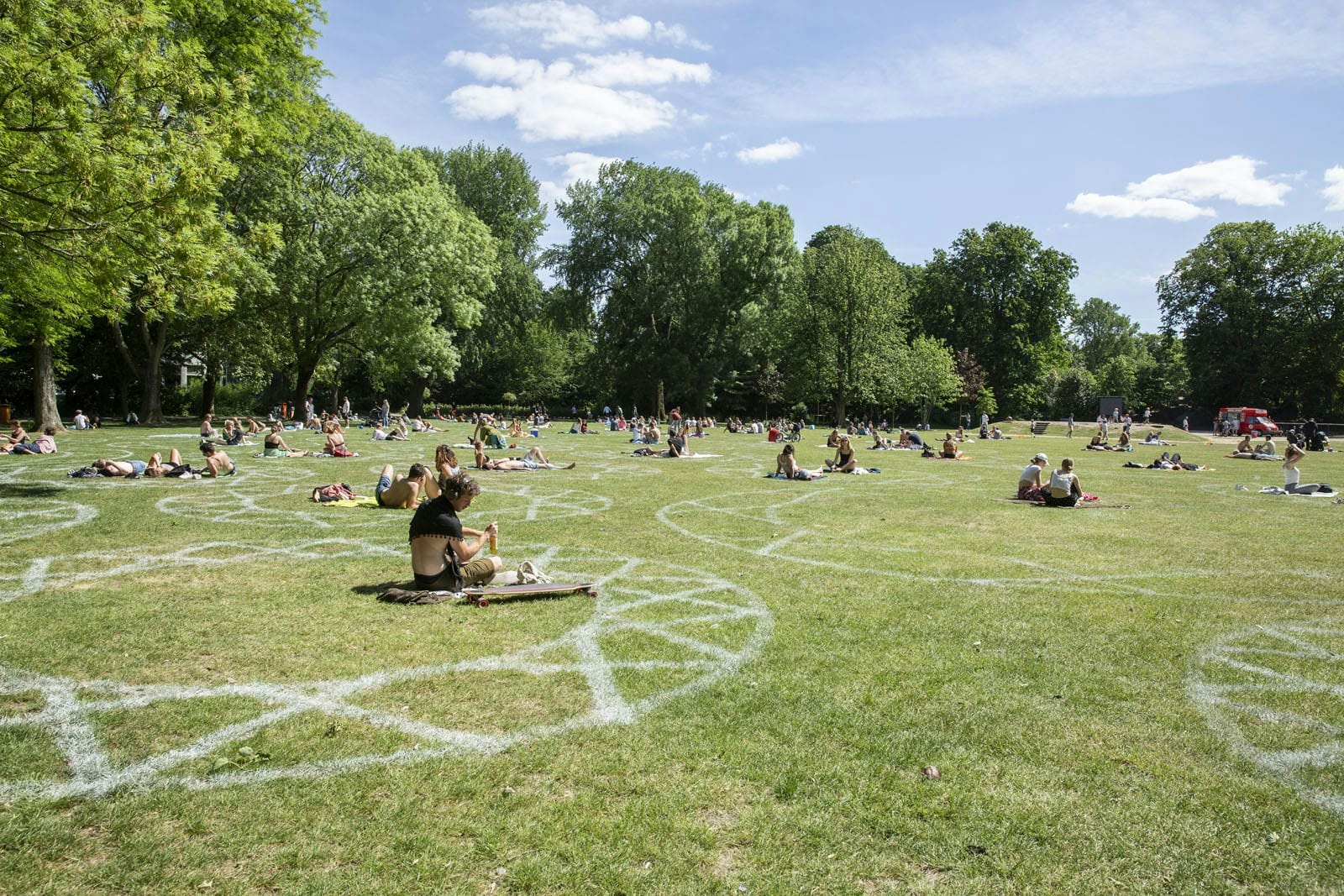 Cirkels in Julianapark en Griftpark moeten Utrechters helpen anderhalve meter afstand te houden