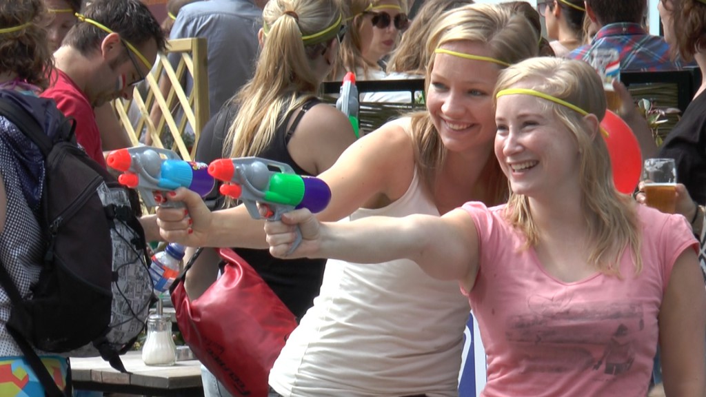 En daar was gisteren alweer de vijfde editie van Kleddernat in de Utrechtse binnenstad. In deze manhunt met waterpistolen krijgen de deelnemers een foto van hun target. Als de target is gevonden en nat geschoten, neemt men de foto van het slachtoffer en gaat weer aan de slag. De speler met de meeste foto’s is de winnaar. Een eenvoudig spel dat garant staat voor drie uur optimaal vermaak. Voor de deelnemers maar ook voor de toeschouwers. Kijk even mee met de sfeerbeelden van DUIC TV