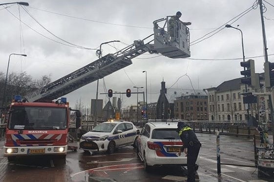 Ook zondagochtend moest de ladderwagen ingezet worden. Vanwege de harde wind was een kabel van een verkeerslicht aan de Catharijnesingel losgewaaid. Het incident gebeurde rond 10.40 uur ter hoogte van het Vredenburgviaduct. Omdat de losgeslagen kabel laag hing is een tijdje een deel van de weg afgezet geweest.