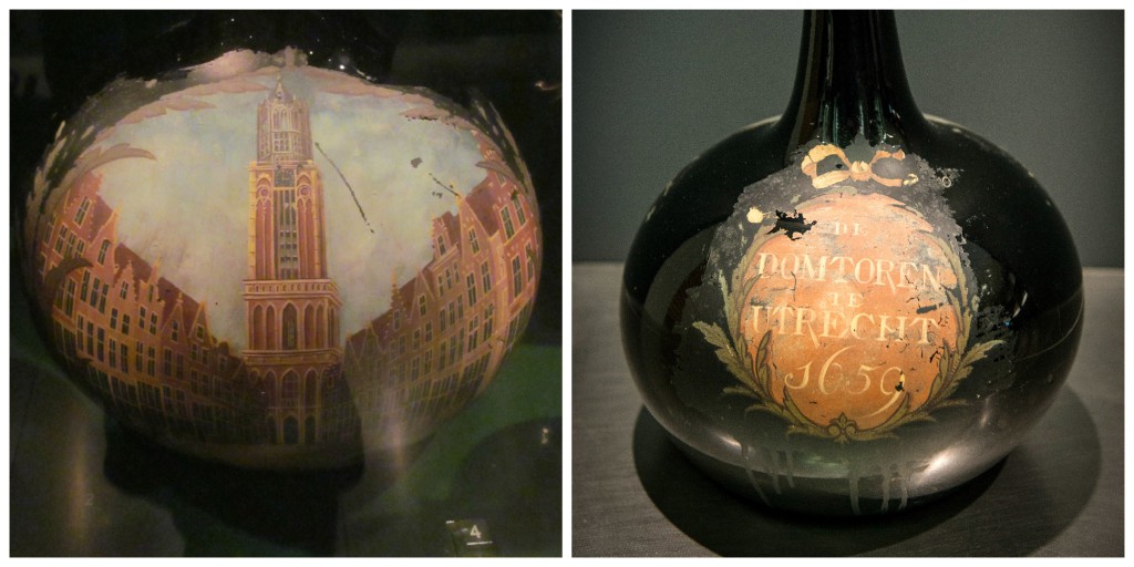 In dit nieuwe Domtorenboek las ik inmiddels ook dat de toren in 1659 een nieuw slingeruurwerk kreeg. Net twee jaar eerder had Christiaan Huygens deze nieuwe vinding gepatenteerd, en Utrecht had als eerste stad de primeur van zo’n groot, modern en veel nauwkeuriger torenuurwerk. Aangezien op de achterkant van ‘mijn’ fles het jaartal 1659 staat, is deze misschien wel gemaakt om dat uurwerk te gedenken, bedacht ik me toen! Om het 100-jarig jubileum te vieren bijvoorbeeld, in 1759.