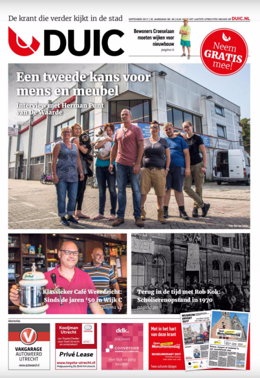 De 40e editie van de DUIC krant is uit en ligt weer verspreid door de hele stad. In deze krant een verhaal over de bewoners aan de Croeselaan die moeten wijken voor nieuwbouw. We interviewden Herman Punt van kringloopwinkel De Waarde, blikten met Rob Kok terug op de scholierenopstand in 1970 en spraken kersvers Europees kampioen Sander de Wijn van Kampong. Dit en nog veel meer is te lezen in de gratis DUIC krant.