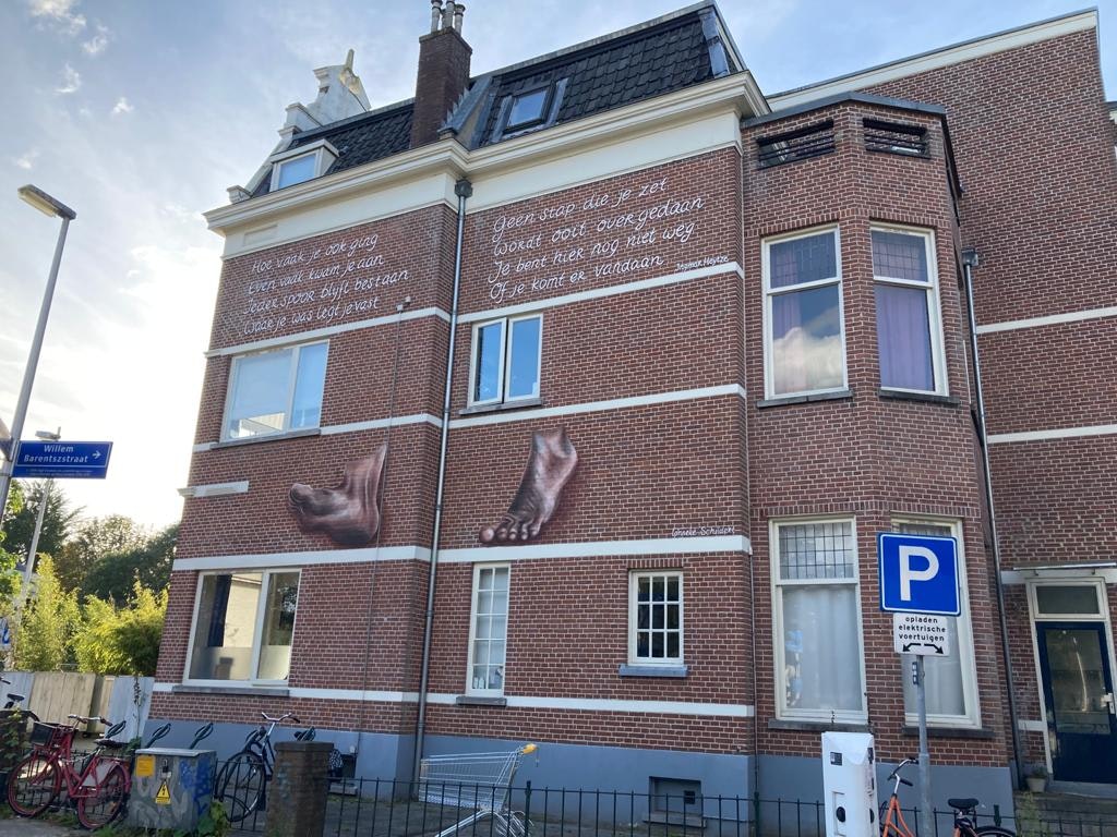 Op de Biltstraat is vanaf donderdag een nieuwe muurschildering te bewonderen. Op de muur van Biltstraat 208 is namelijk een gedicht geschilderd van de Utrechtse schrijver en voormalig stadsdichter Ingmar Heytze.