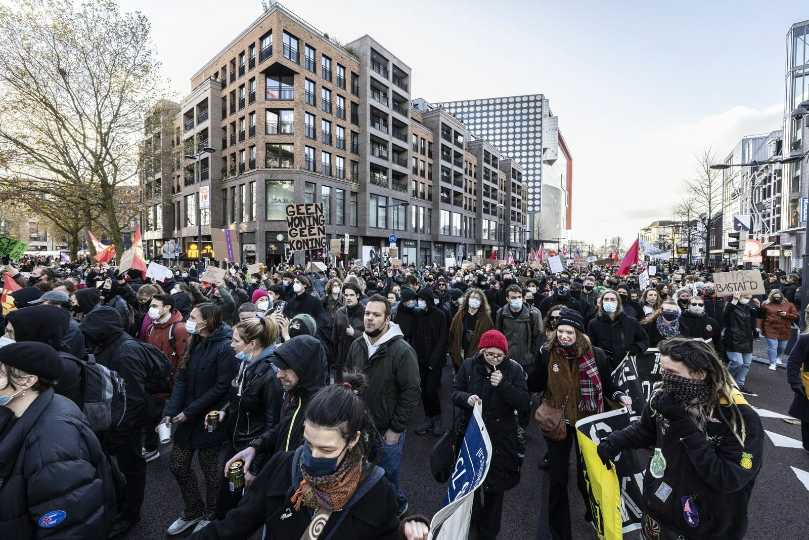 Honderden demonstranten waren zondagmiddag aanwezig bij het Woonprotest in Utrecht. Het eerste uur werd de menigte toegesproken door een aantal sprekers en daarna volgde een mars door de stad.