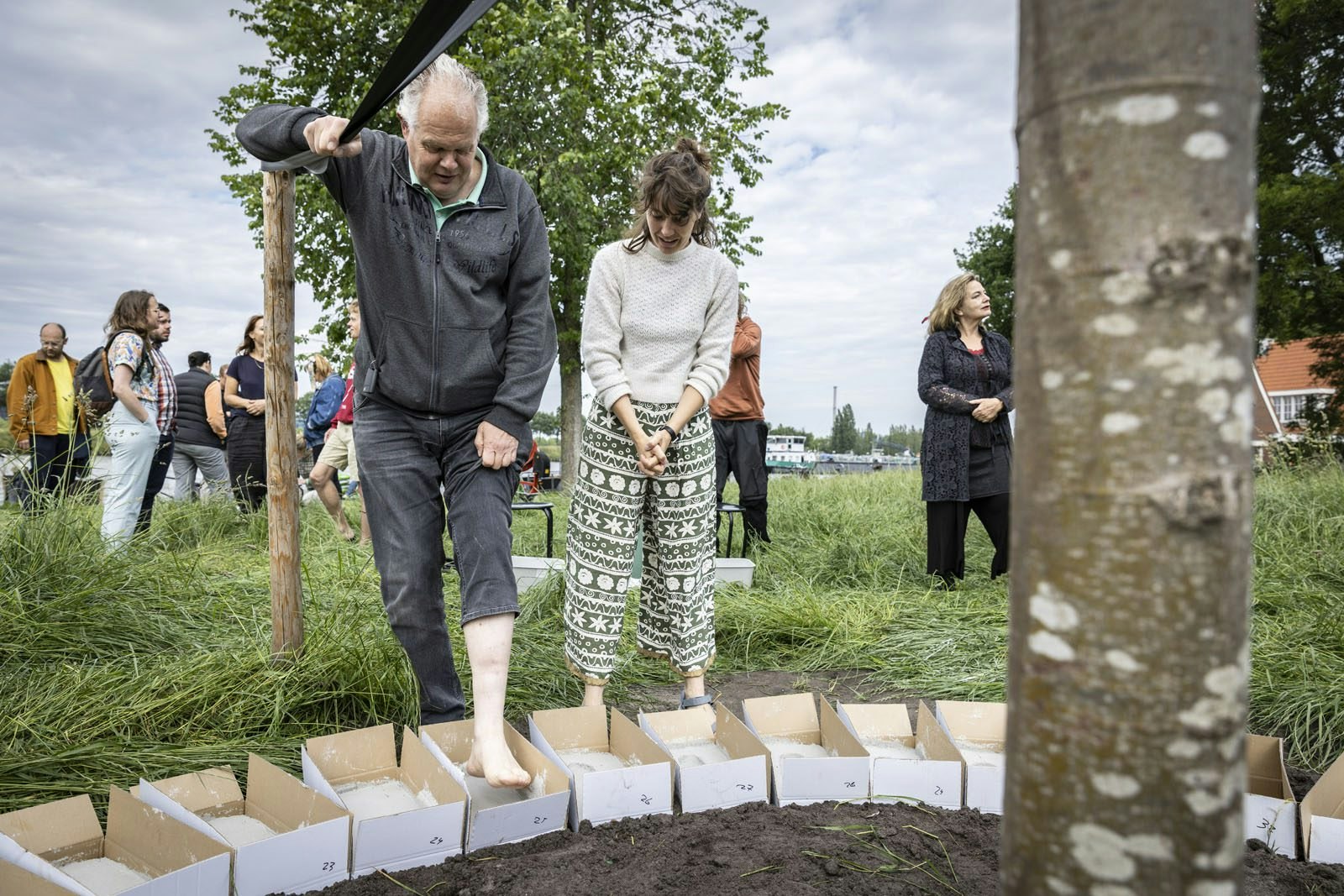 De eerste voetafdrukken zijn zaterdagochtend gezet bij de zogenoemde ‘herinneringsboom’ in Kanaleneiland. Uiteindelijk worden er dit jaar ruim 400 ‘voetstappen’ achtergelaten bij de tien lindebomen in alle Utrechtse wijken.