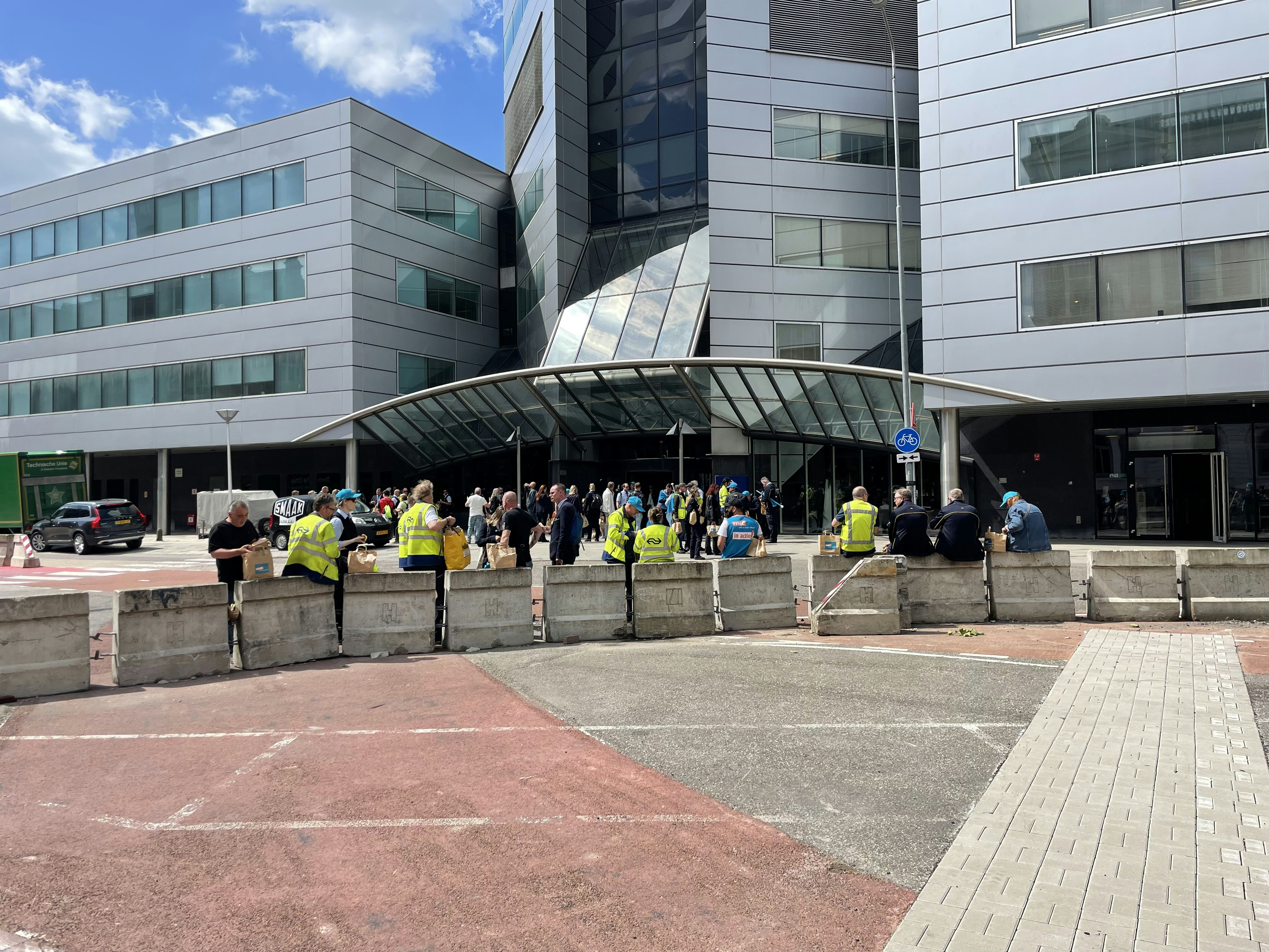 Een groep van zo’n 250 NS-werknemers had zich maandagochtend verzameld op het Stationsplein in Utrecht om te demonstreren voor betere arbeidsvoorwaarden.