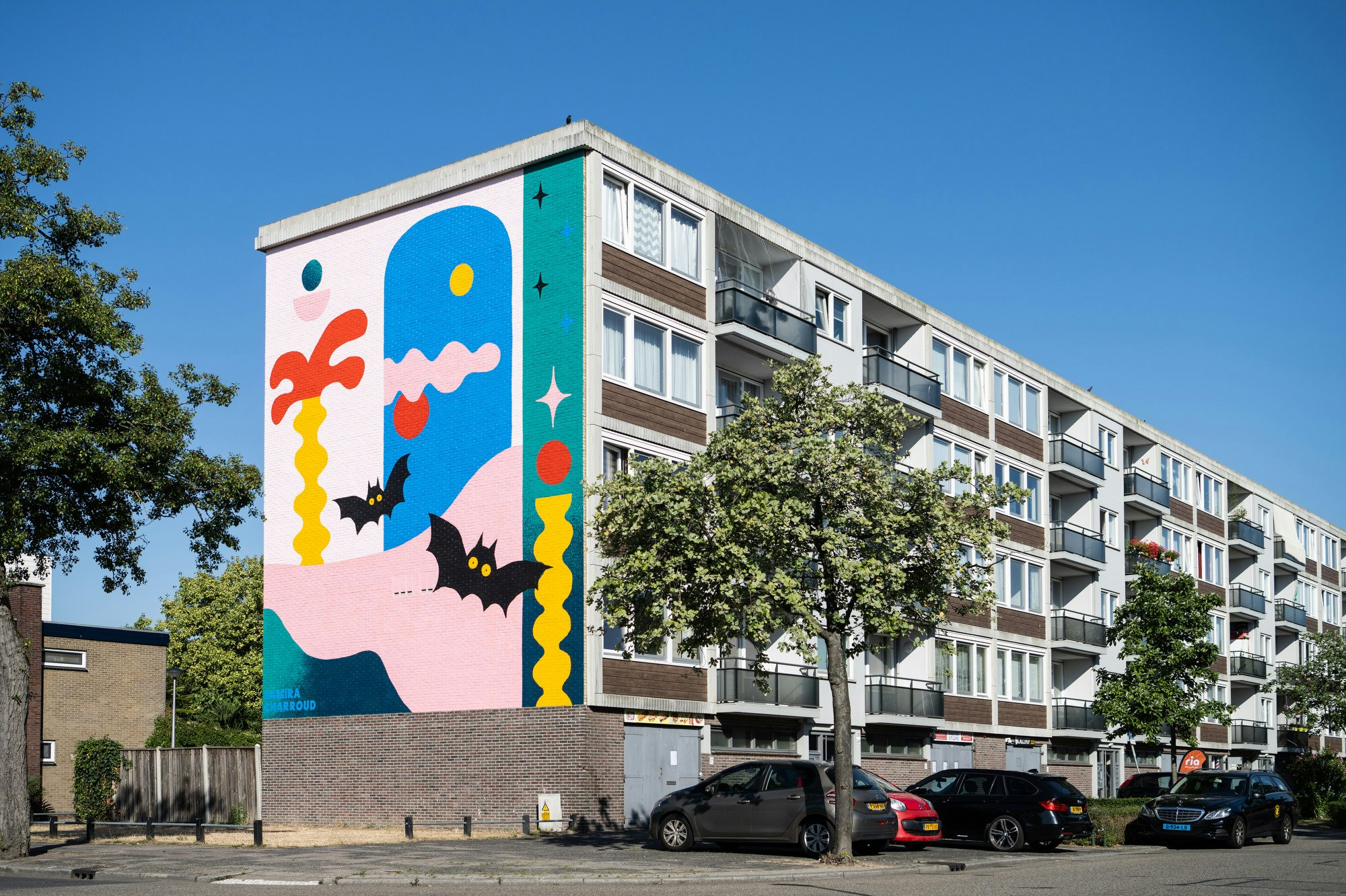 Kunstenaar Samira Charroud heeft een muurschildering gemaakt op een kopgevel van een flat aan de Columbuslaan in Kanaleneiland. De schildering is een onderdeel van het project City Canvas waar kunstenaars met Utrechtse roots diverse muurschilderingen maken in verschillende wijken.