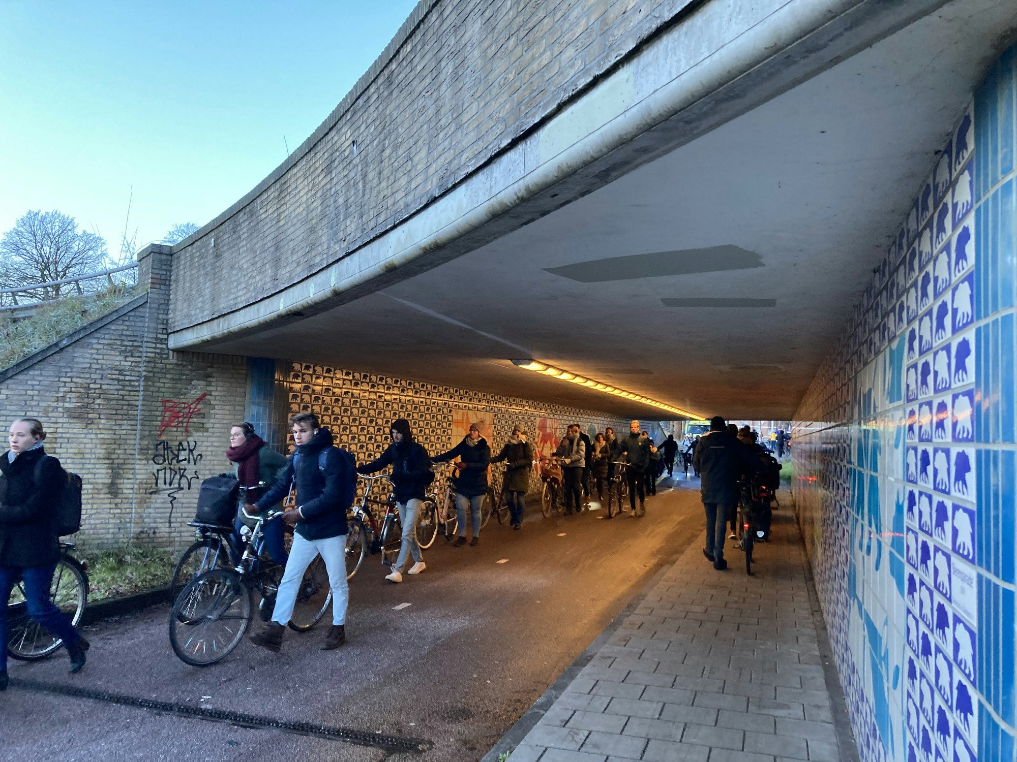 Het was woensdagochtend extreem glad op het drukke fietspad bij de Berekuil in Utrecht. De politie was samen met medewerkers van handhaving aanwezig om fietser erop te wijzen dat ze verder moesten lopen.