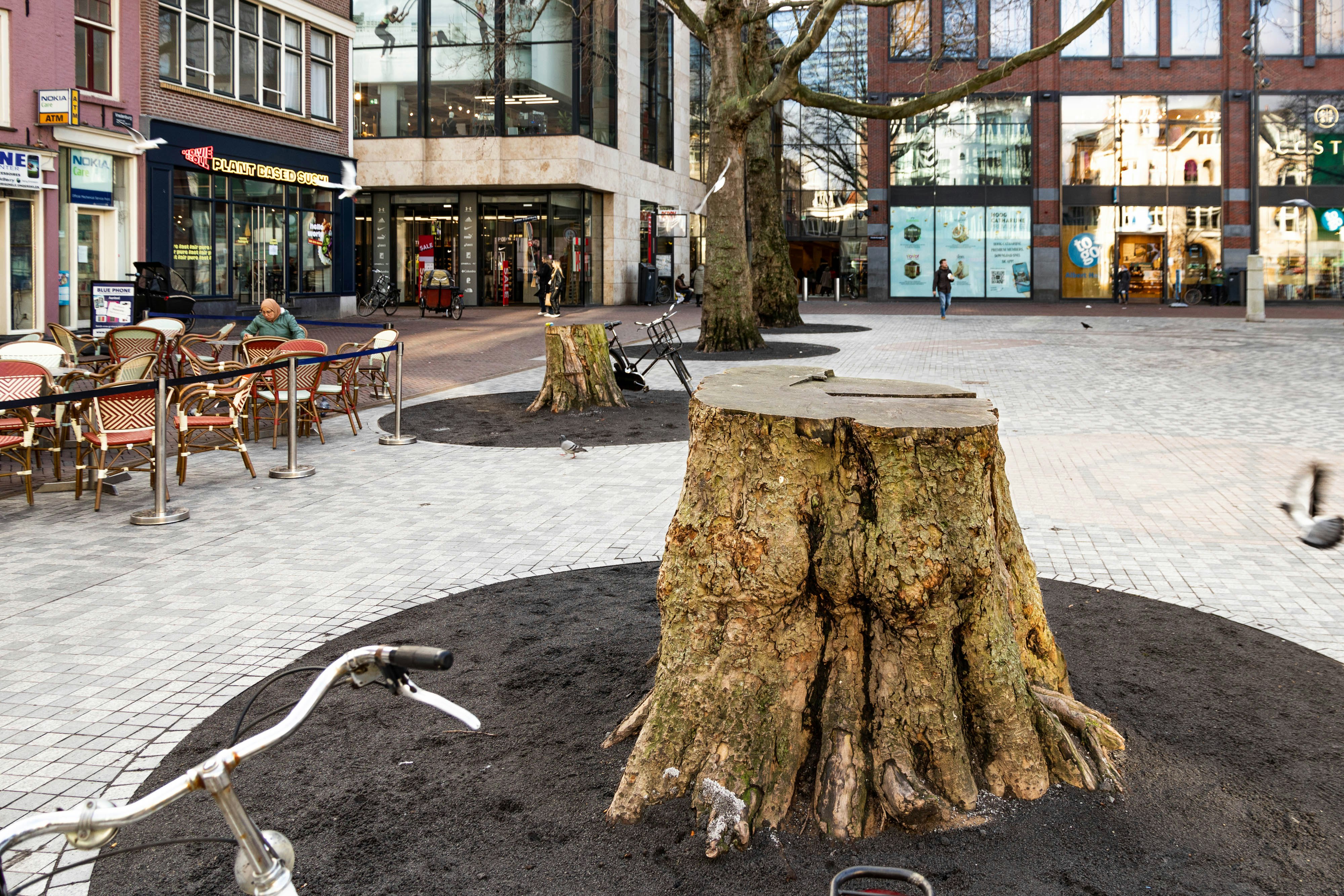 De gemeente gaat nog dit plantseizoen – dat tot maart duurt – twee nieuwe bomen planten op het Vredenburgplein in Utrecht. De bomen vervangen de twee platanen die eind 2021 met spoed gekapt werden.