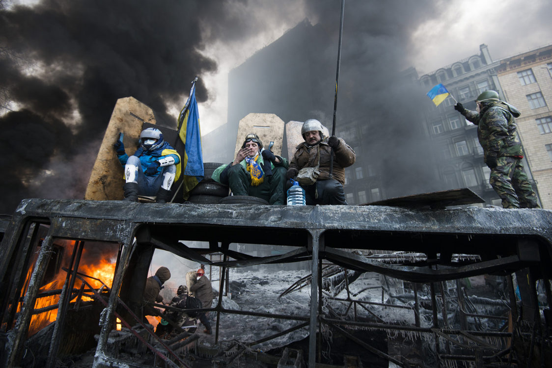 De foto waarmee Oosterbroek won was gemaakt op de Hrushevs’koho-straat in Kiev. Op deze locatie kwam het vorig jaar tot harde gevechten tussen anti-regeringsdemonstranten en de oproerpolitie. Het zwaartepunt van de revolutie lag dagenlang voor de ingang van het FC Dynamo Kievstadion. Hier werden de oprukkende demonstranten tegengehouden die naar het parlement wilden optrekken. Barricades van uitgebrande politiebussen en zelfgecreëerde muren scheidden de twee groepen.