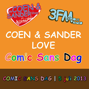 Comic Sans Dag is een initiatief van 3fm dj’s Coen en Sander. ” Er is maar één geijkt lettertype dat de tand des tijds tergt en dat is Comic Sans MS. Coen en Sander smullen van dit potsierlijke, kolderieke font en vieren al enkele jaren het bestaan ervan met Comic Sans Dag. Dit jaar valt Comic Sans Dag op 5 juli. Die dag stuur je al je mails, print je al je verslagen en sticker je al je adresetiketten in dit illustere lettertype.”