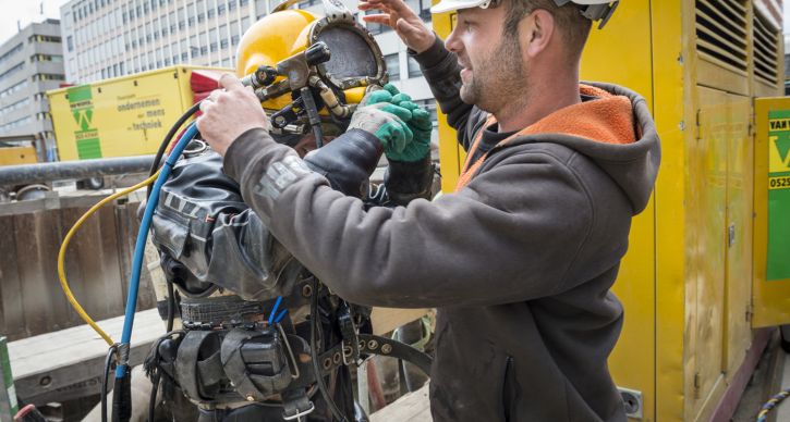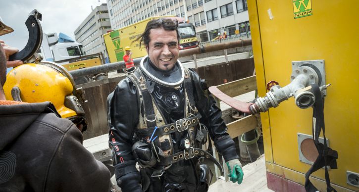Een specialistisch klusje: onderwaterbeton storten. Het moest gebeuren bij de nieuwe inrit van de parkeergarage Vredenburg in het centrum van Utrecht. Het beton zorgt voor een afsluitende laag in de inrit. Onderwaterbeton storten kan niet zonder duikers.