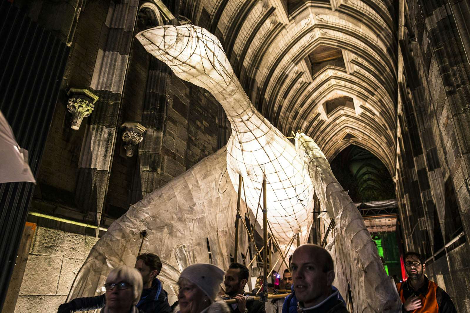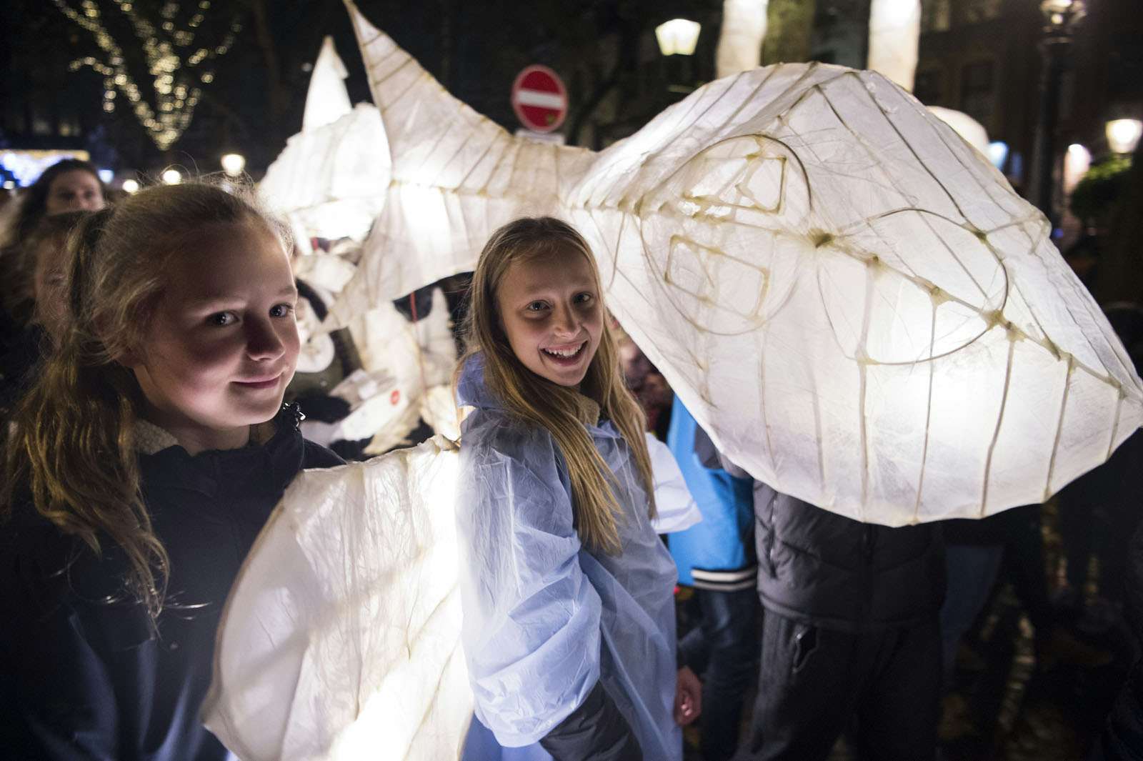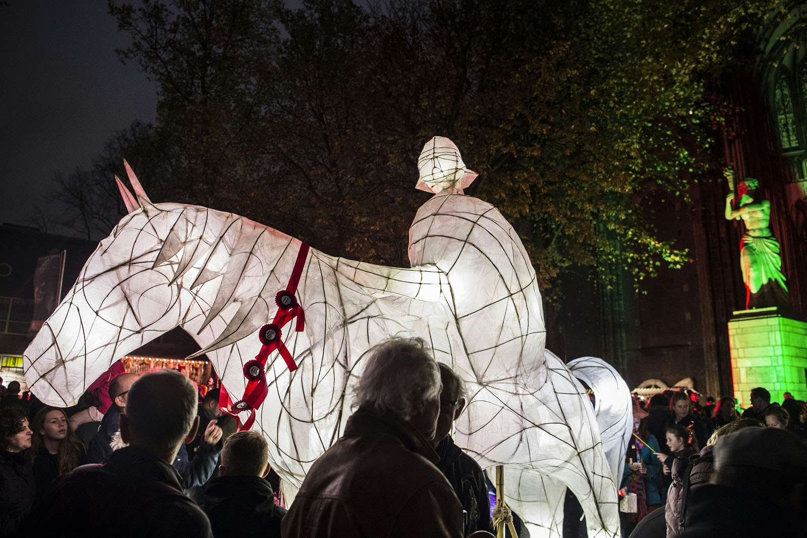 Zevenduizend mensen namen gisteren deel aan de Sint Maarten Parade door Utrecht. Deze jaarlijkse optocht vol licht, lampionnen en muziek trok van het Domplein door de binnenstad naar het Museum Catharijneconvent.
