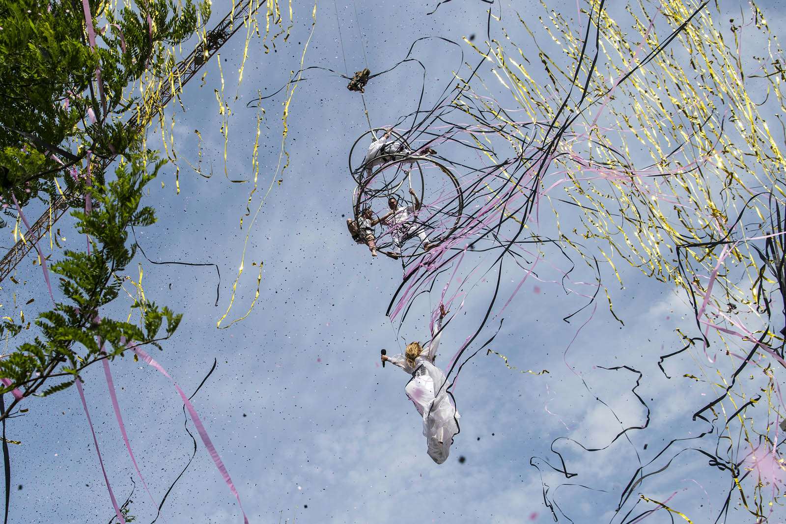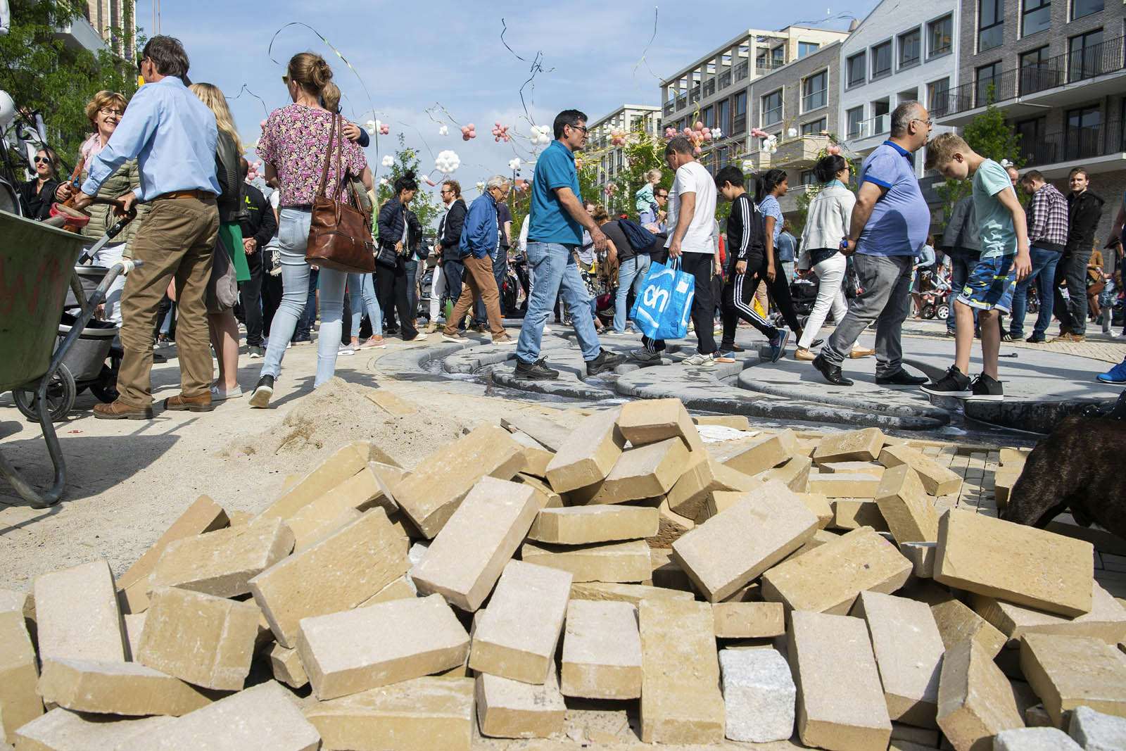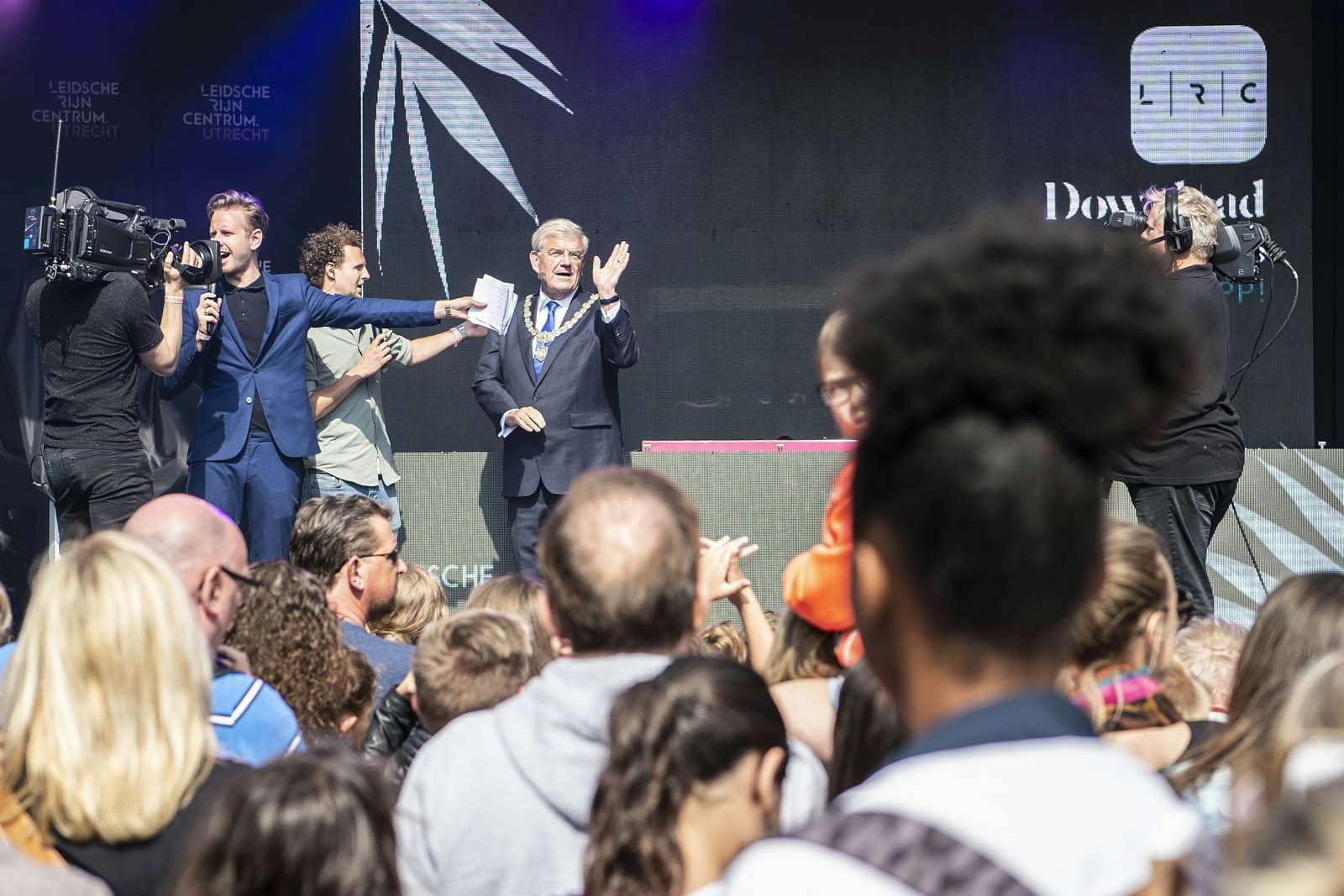 Het was een en al spektakel op het Brusselplein en de straten eromheen. Met confettikanonnen, een zangeres die door een bouwkraan opgetakeld werd, vlaggenparades en duizenden inwoners van Leidsche Rijn werd de opening van het centrum gevierd.