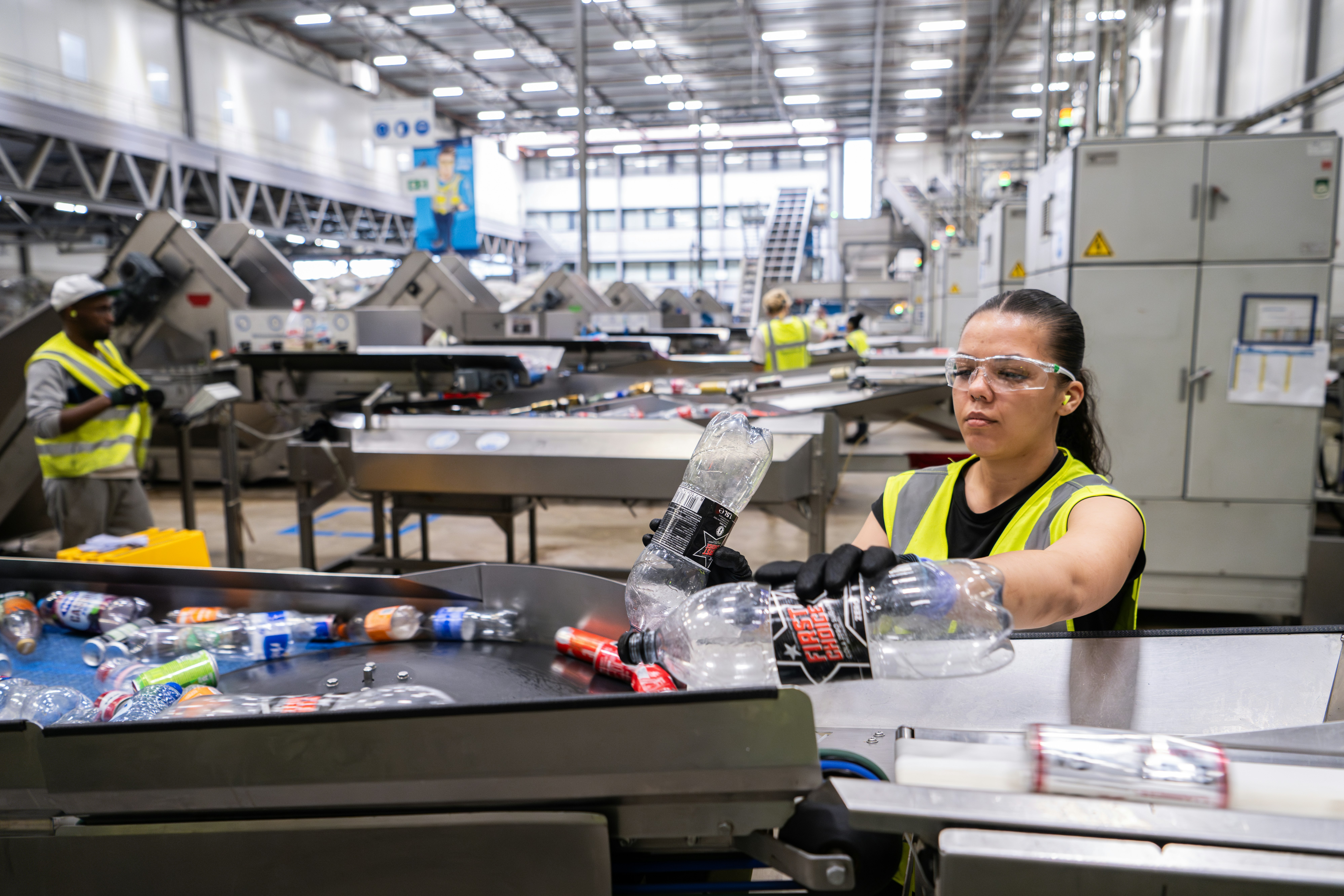 Er hangt een penetrante lucht in de hal aan de Atoomweg op Lage Weide. Dat is ook niet zo gek, wekelijks worden er zo’n 150 vrachtwagens geleegd die tot de nok toe gevuld zijn met lege flesjes en blikjes. Hier, in dit centrum in Utrecht, worden de miljoenen verkochte verpakkingen verwerkt en gereedgemaakt voor hergebruik.
