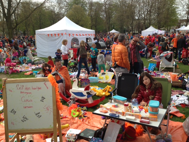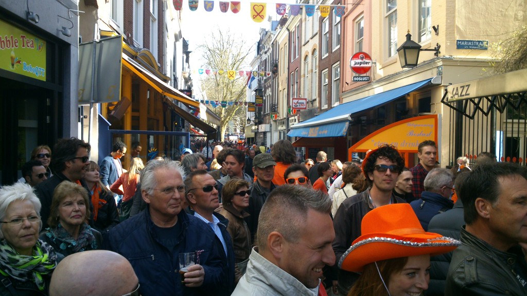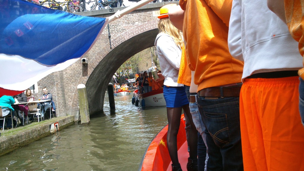 Het was zowaar een heerlijke maandagavond en een prachtige dinsdag. Ideale temperaturen om het Oranjefeest uitbundig te vieren. En dat gebeurde in Utrecht. Koninginnennacht was traditioneel weer een vrolijk gekkenhuis met een door 125.000 man bezochte vrijmarkt. Koninginnedag is de dag om bier te drinken, de vrijmarkt te bezoeken, bandjes te zien of een rondje door de singels te varen. Een impressie.