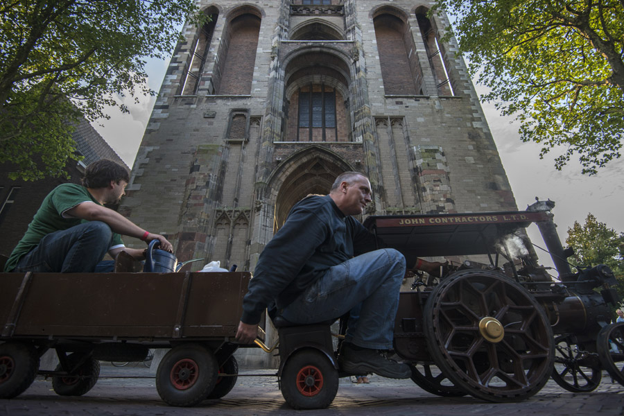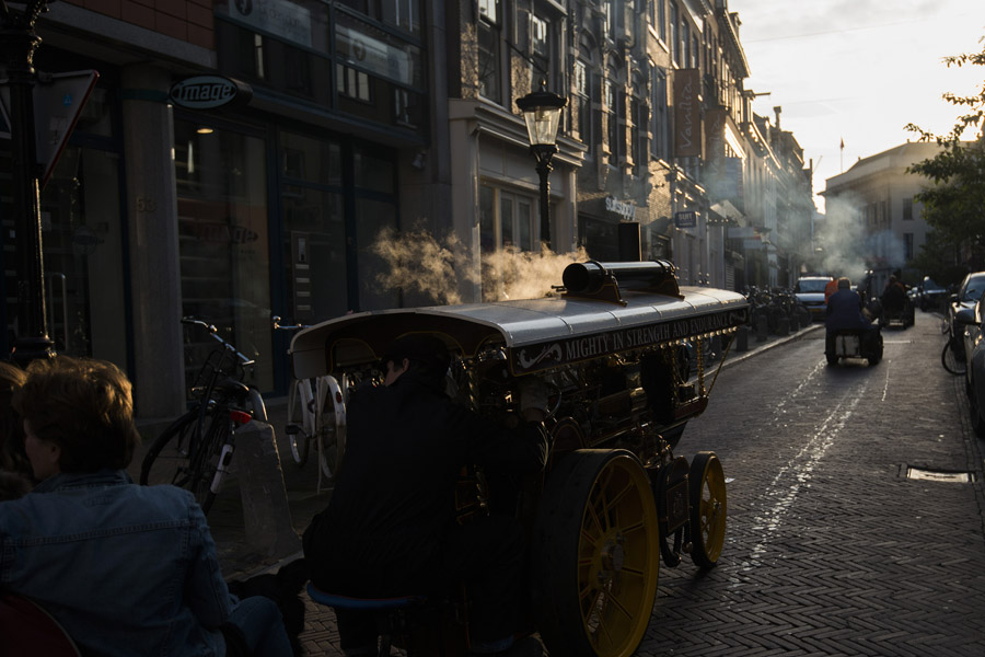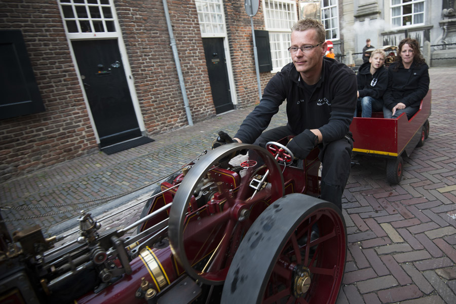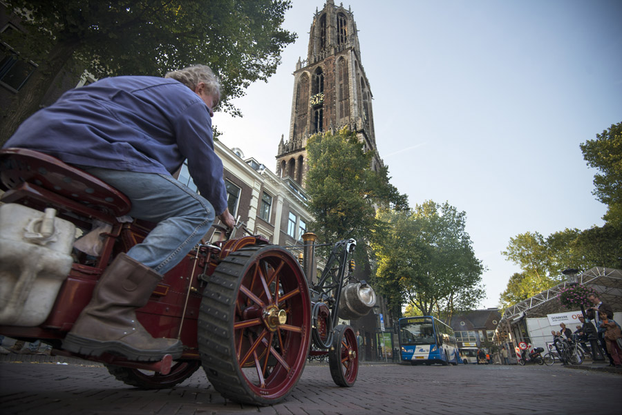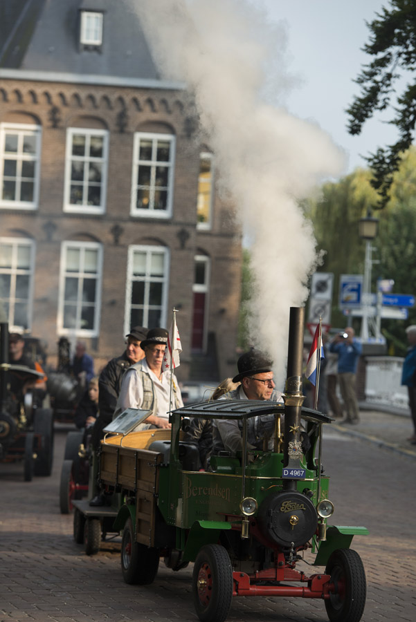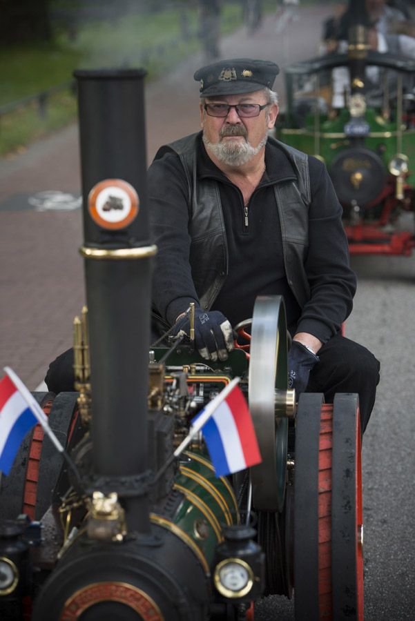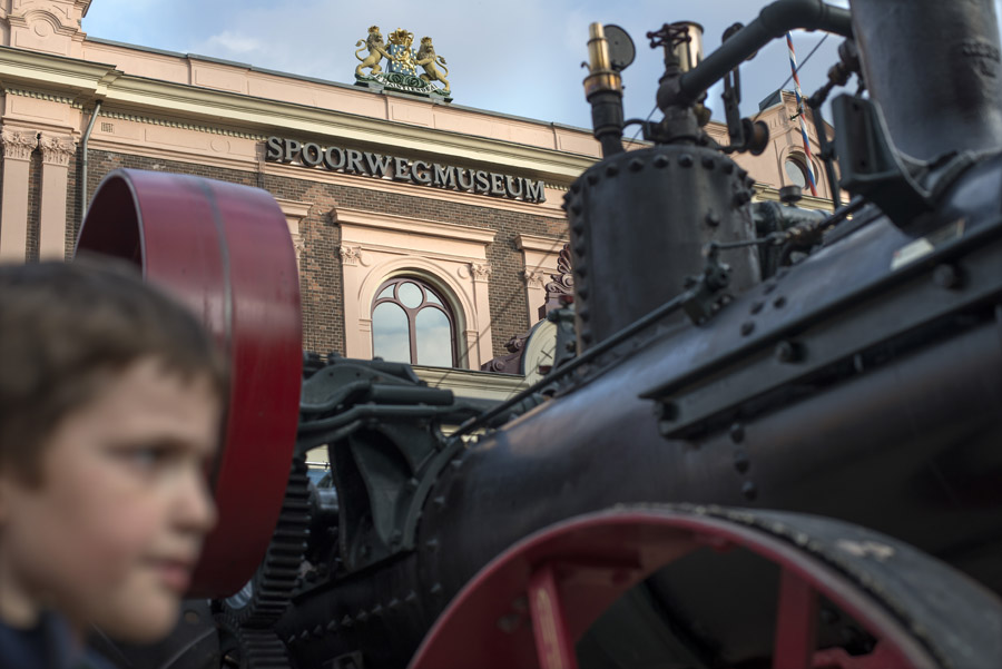 Met een hoop lawaai en grote stoomwolken trokken vele voertuigen vanaf het Spoorwegmuseum richting de binnenstad. Alle voertuigen met wielen uit het museum die zelfstandig kunnen rijden op stoom deden mee aan een tocht door het centrum: een stoomparade.
