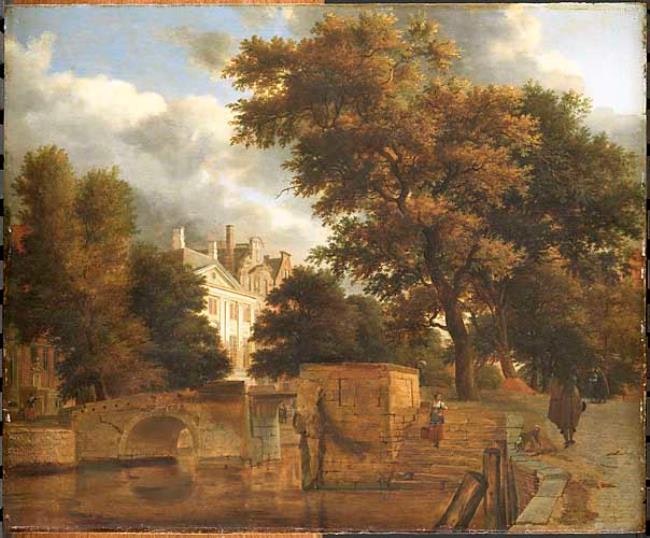 En dan is er nog het witte gebouw met de renaissancegevel, links naast de brug. “Het komt mij niet zo snel bekend voor”, zegt De Kam. “Het lijkt in ieder geval niet op het huis Hasenberg dat onderdeel was van het stadhuis en in 1546 een renaissancegevel kreeg.” Laurens Schoemaker schiet bij het zien van het witte gebouw wel iets te binnen. Hij zoekt in de database van het RKD en tovert een schilderij van Jan van der Heyden op het scherm. Het is een gefantaseerd stadsgezicht met een stenen brug, dat geïnspireerd is op Amsterdam. Op dit werk van Van der Heyden staat, op dezelfde plek als op het schilderij van Prins, zo’n zelfde wit gebouw. Prins ‘leende’ het witte gebouw dus van ‘De stenen brug’ van Van der Heyden, die het schilderde tussen 1660 en 1672. Het schilderij van Van der Heyden bevindt zich nu in het Rijksmuseum in Amsterdam.