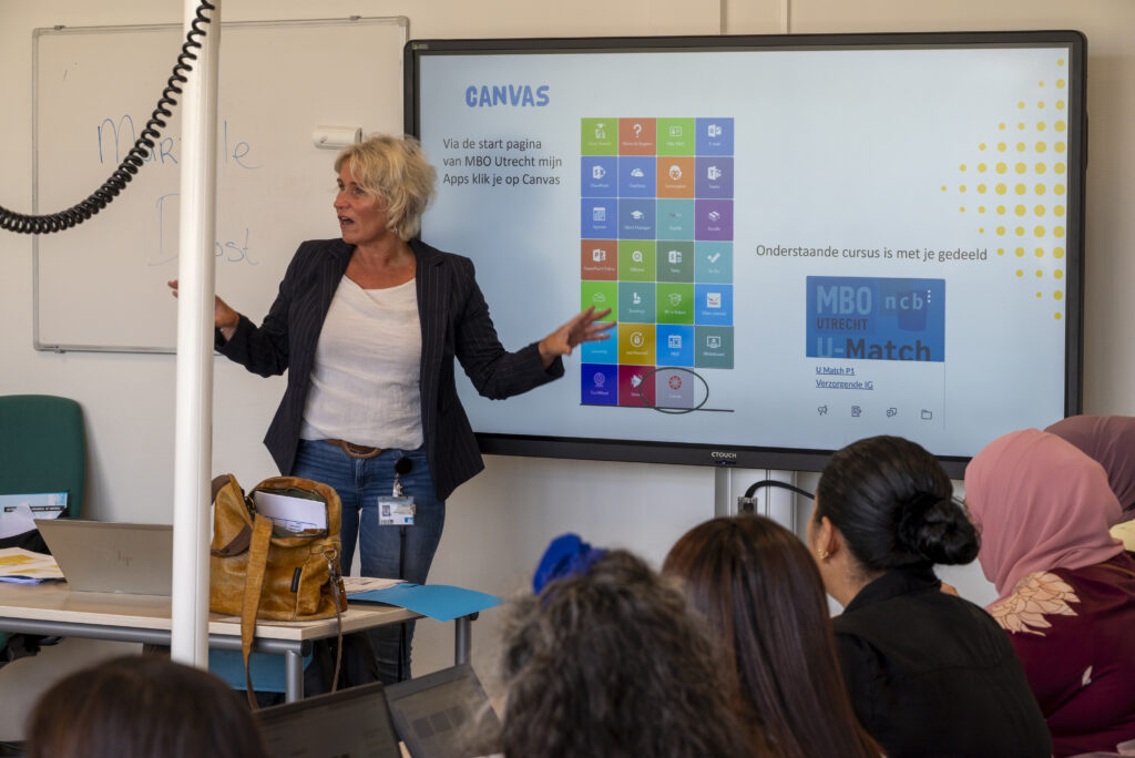 Zestien studenten zitten in een van de lokalen bij MBO Utrecht. De eerste dagen zitten er net op. Het is niet zomaar een groep studenten, want ze doen mee aan het nieuwe project U-Match. Samen met werkgevers en het mbo ontwikkelde gemeente Utrecht dit leer-werk-inburgertraject.
