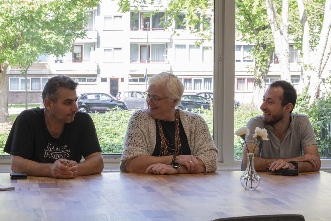 De Syrische Firas Bouirar (51) en Hosen Ahmad (31) zitten in de klas die begin deze maand is begonnen. Allebei wonen ze inmiddels bijna drie jaar in Nederland. Firas woont nog in een asielzoekerscentrum, Hosen heeft sinds kort een eigen woning. Allebei spreken ze redelijk Nederlands.