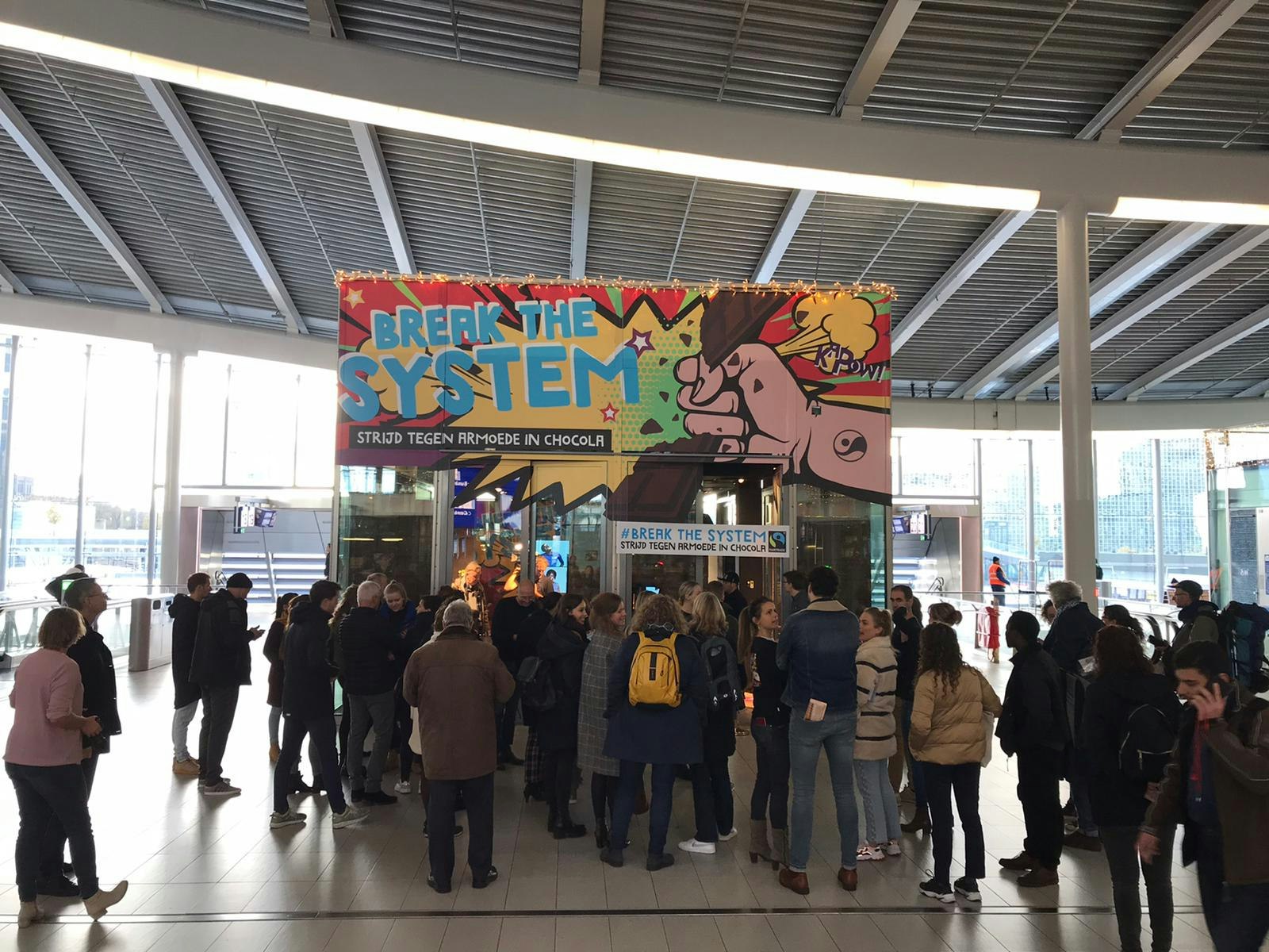 Op station Utrecht Centraal opent vandaag een tijdelijke chocoladewinkel waarmee aandacht wordt gevaagd voor de problemen in de chocoladewereld. In de winkel komt een grote muur van chocola te staan die bezoekers kunnen opeten.