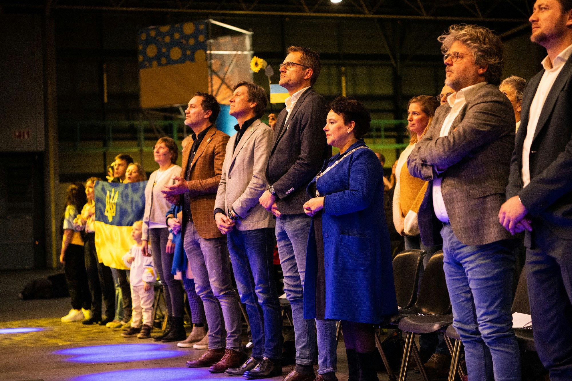 Ook burgemeester Sharon Dijksma was aanwezig bij deze bijeenkomst sprak de bezoekers toe: “Ik voel me met jullie verbonden. Weet dat jullie niet alleen in deze strijd staan. We staan naast jullie.” Tevens bedankte ze alle vrijwilligers, ambtenaren, hulpverleners en alle andere mensen die afgelopen jaar hun steentje hebben bijgedragen aan de steun voor de Oekraïners.