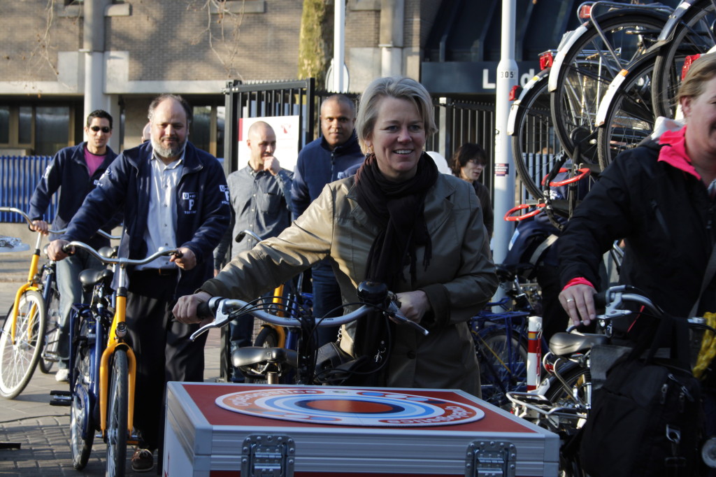 ’s Morgens een lekke fietsband en ’s avonds toch weer op de fiets naar huis kunnen? Dat is het idee achter het nieuwe Fietsherstelpunt op het Smakkelaarsveld dat wethouder Mirjam de Rijk vanmiddag opende.