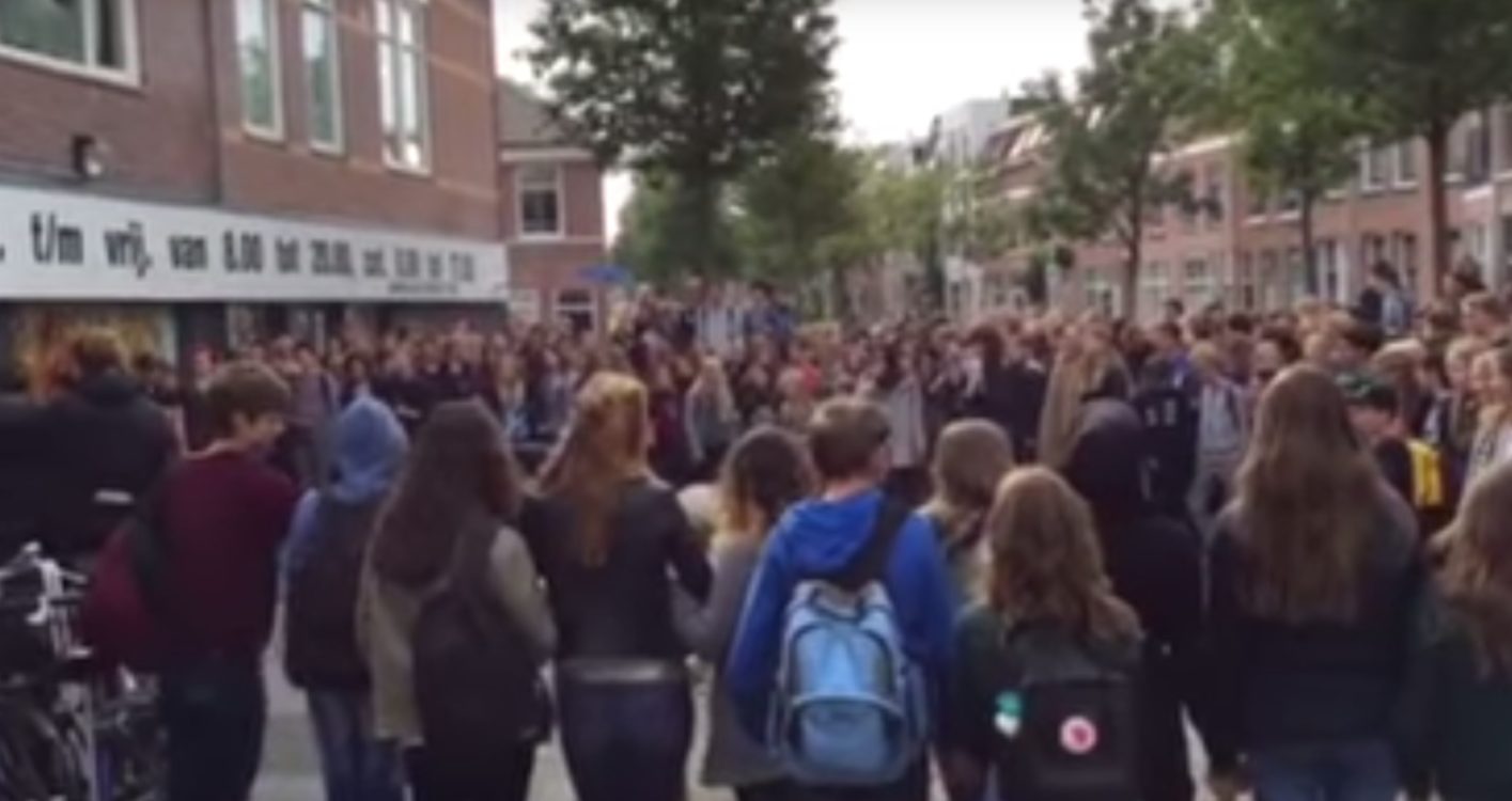 Vanwege de sluiting van buurtsuper MCD in Lombok hebben scholieren van het Christelijk Gymnasium een stille tocht en een minuut stilte gehouden.