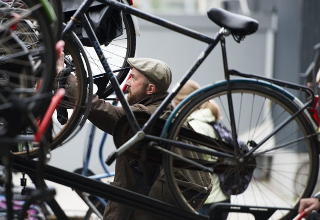 Opoefietsen, racefietsen, stationsfietsen, kinderfietsen, kapotte fietsen, gestolen fietsen, geverfde fietsen en damesfietsen. Utrecht barst van de fietsen. Niet voor niets krijgt de stad dus ook de grootste stalling ter wereld. Met plek voor zo’n 12.500, juist ja: fietsen. Fotograaf Robert Oosterbroek sprong op zijn fiets en legde fietsend Utrecht vast.