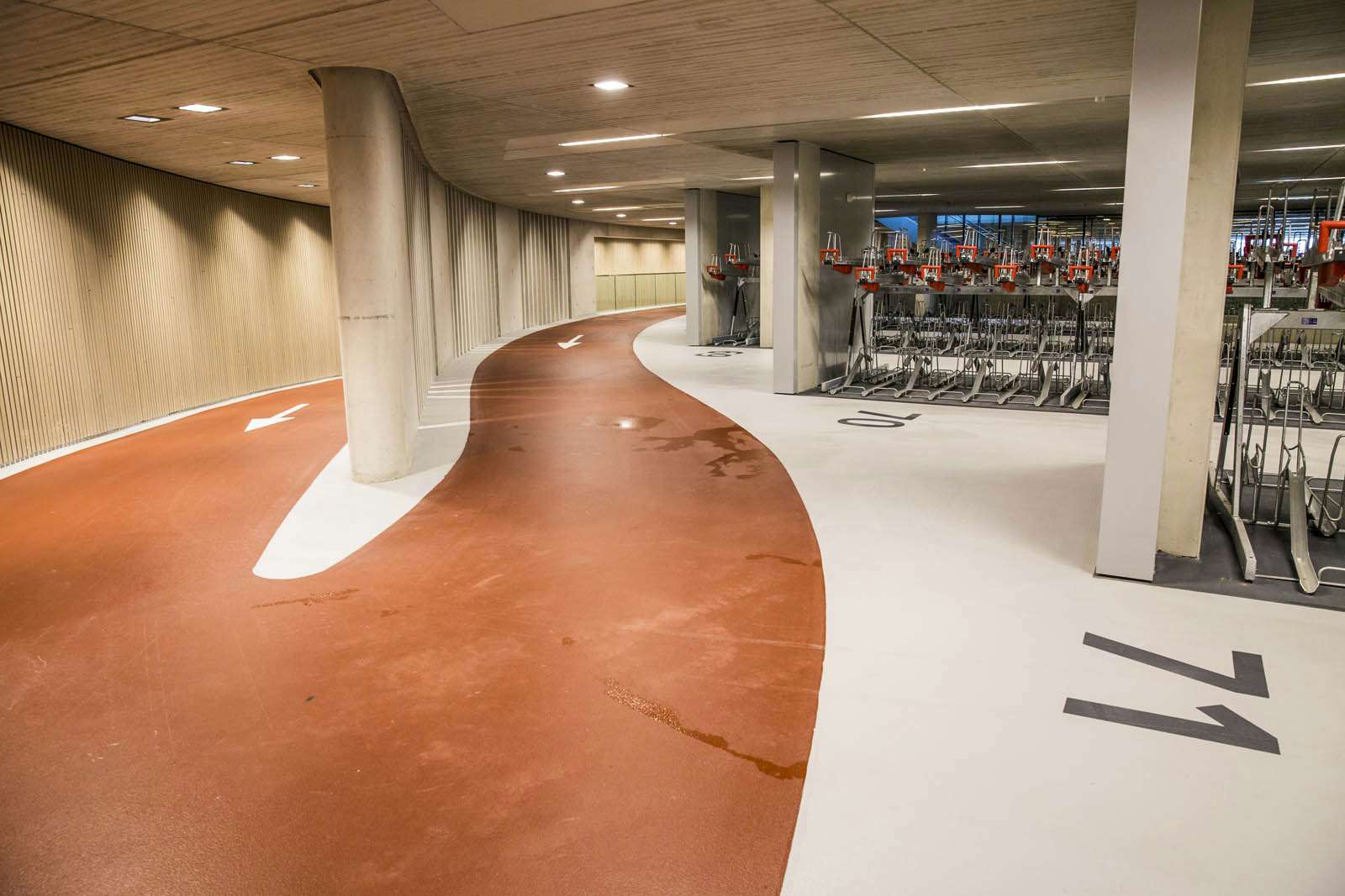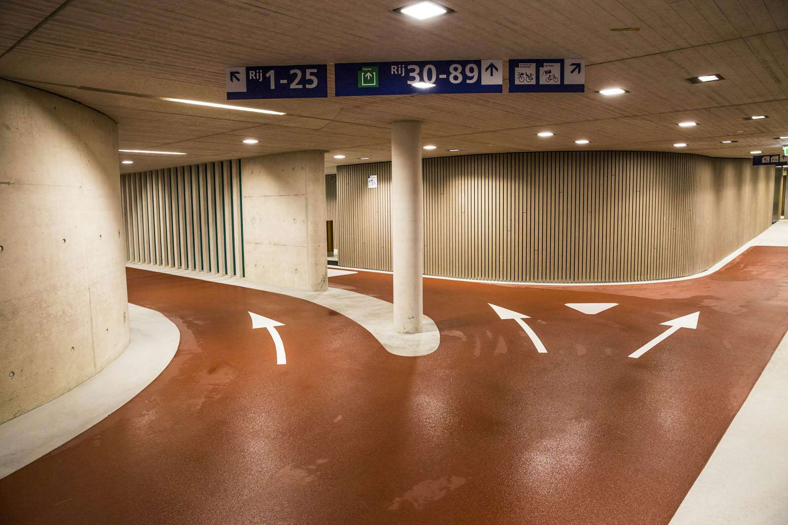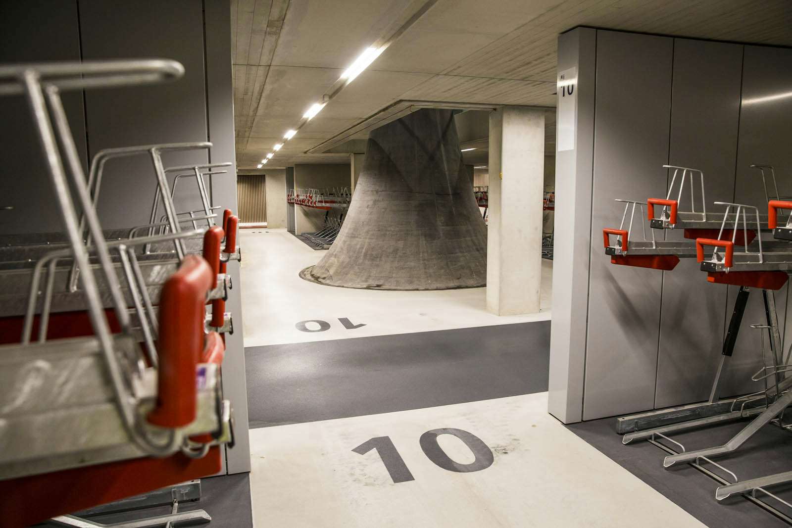 ben er inmiddels in geweest. het is voor een fietsenstalling gewoon heel mooi. maar LEVENSGEVAARLIJK, want zonder begeleiding kom je er NIET meer uit. Er staan GEEN borden hoe je naar het station komt (via een obscure deur en trap voor mensen zonder hoogtevrees) en de uitgang met de fiets kan alleen door de mensen die het uitchecken verzorgen worden gewezen. Maar dan moet je die mensen wel eerst zien te vinden…